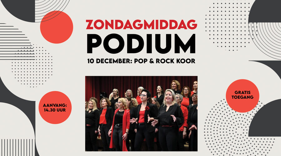 Op zondagmiddag 10 december zingt het Pop & Rock koor tijdens het ZondagmiddagPodium in Bieb Nijkerk