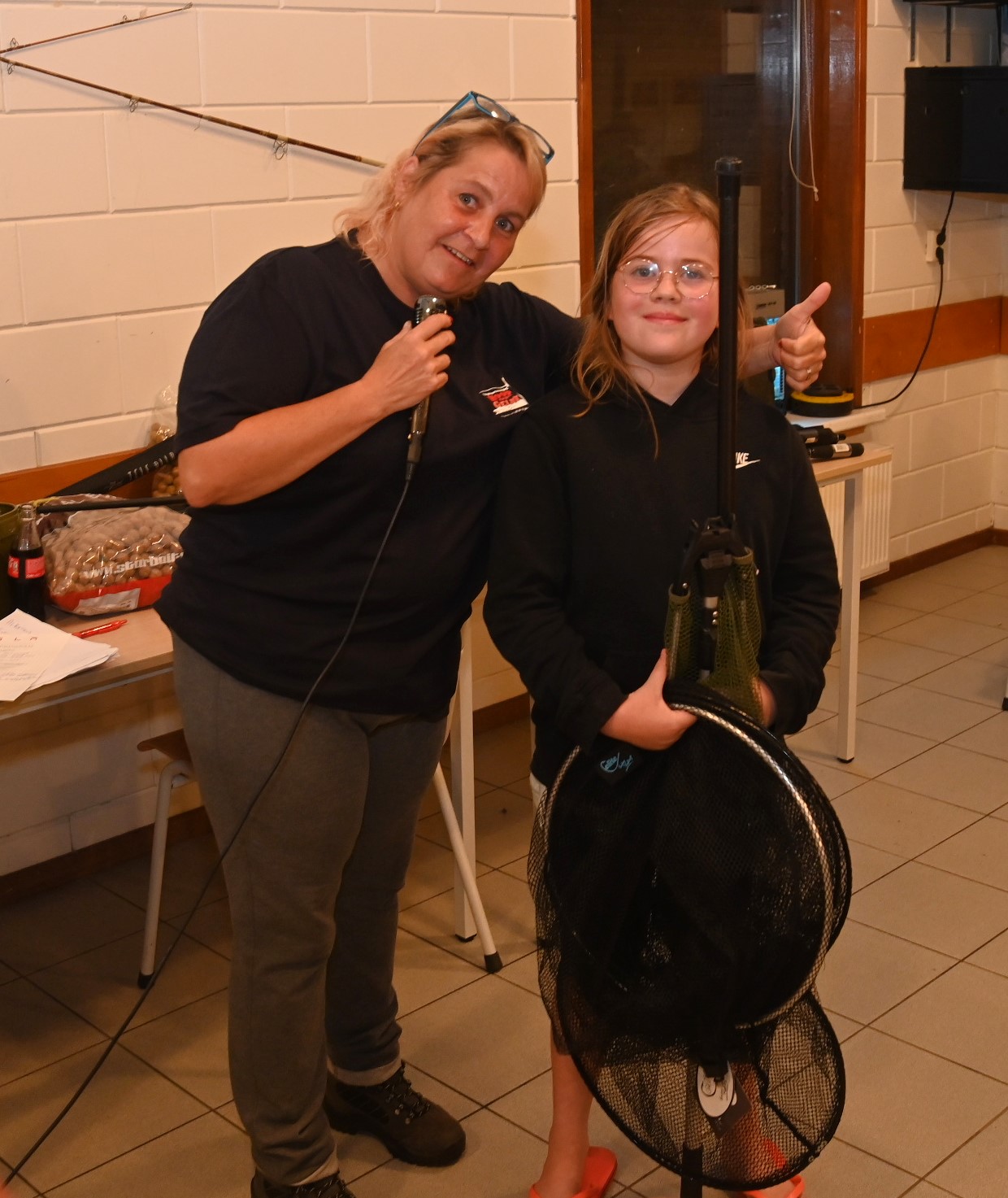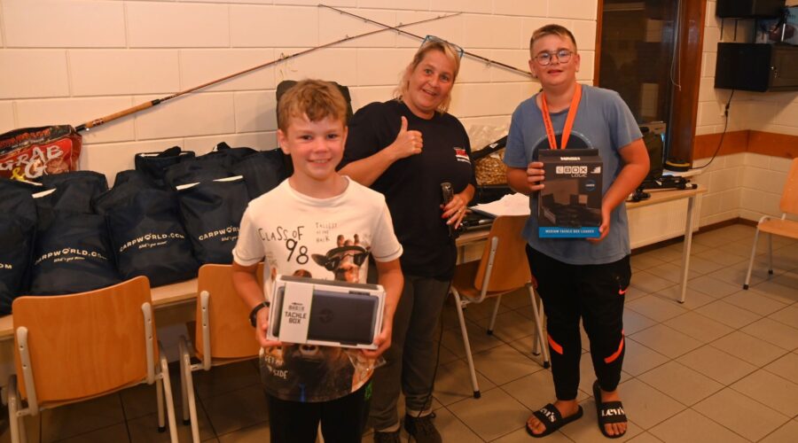 In het clubgebouw van hengelsportvereniging Hoop op Geluk zijn zaterdagmiddag 12 augustus de prijzen uitgereikt van de Jeugdvisnacht. De prijs voor de grootste steur ging naar Kirsten de Jong en Daley Koopmans. Die was liefst 1,35 meter. Lin Berkmortel haalde de meeste vis uit het water, 23 stuks. En Sten van Herwaarden en Jorin Bos haalden de zwaarste karper uit het water van visvijver Watergoor (11,9 kilo). Tijdens de prijsuitreiking was er patat en kip voor alle deelnemers en iedereen kreeg een prijs. Er waren meer sponsors dan ooit tevoren. Foto’s Kees van den Heuvel