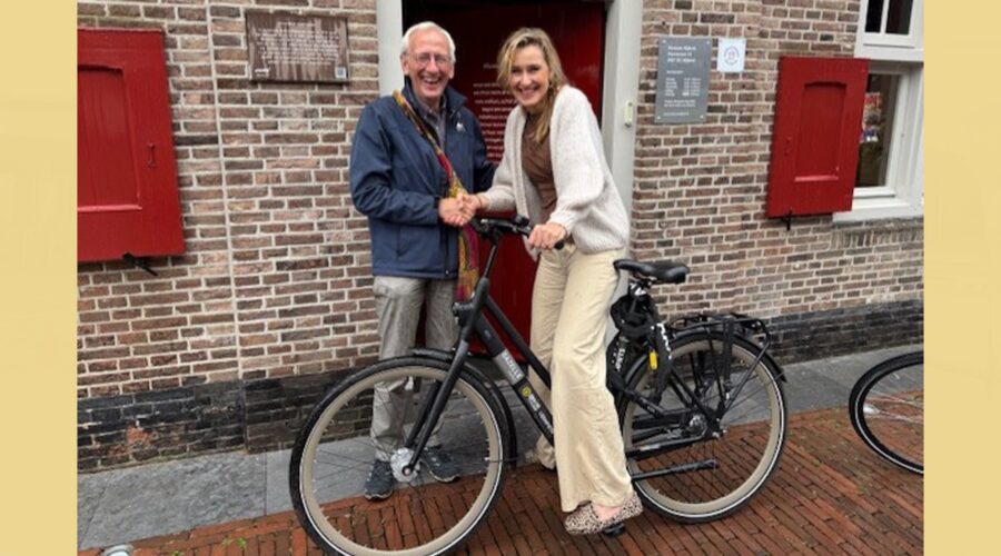 Een bijzonder moment voor Museum Nijkerk: Fietshandel Bike Totaal Ridder uit Nijkerk heeft de allereerste officiële museumfiets in bruikleen gegeven aan het museum. Het is een primeur voor de stad, want vanaf nu kan directeur-conservator Edith de Jong de bezoeken en afspraken in de stad duurzaam en in stijl op de fiets afleggen. De nieuwe museumfiets symboliseert niet alleen duurzaamheid en mobiliteit, maar ook de sterke samenwerking tussen lokale ondernemers en het museum. “Wij zijn ontzettend blij met dit mooie initiatief van Fietshandel Ridder,” aldus Edith. “Het maakt ons werk in en voor de stad een stuk makkelijker en laat zien dat erfgoed ook in beweging kan zijn.”