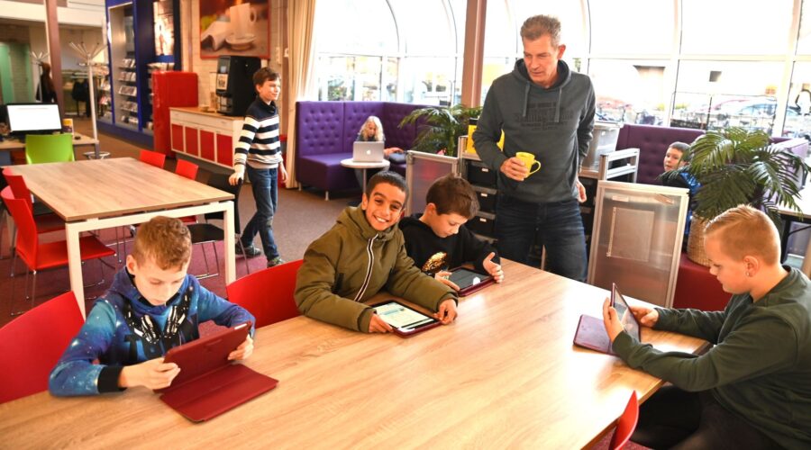 In de bibliotheek van Nijkerk kon vrijdagmiddag 1 december worden geprogrammeerd met de Roboc@r. Aan de hand van Fischertechnik modellen werd de aanwezige kinderen geleerd hoe ze konden programmeren. De speciale drone die begin deze week nog vloog door de bibliotheek was kapot. Foto Kees van den Heuvel