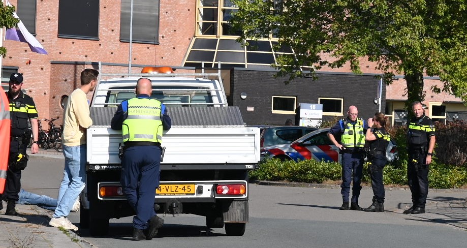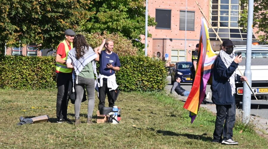 Wederom was er maandag 29 september een demonstratie bij het Israelcentrum op de Henri Nouwenstraat in Nijkerk. Een groep demonstranten, uitgerust met de Palestijnse vlag en de regenboogvlag, posteerde bij het Israelcentrum. Ze boden ook iets aan, een envelop met ‘(zogenaamde) steun’ (aldus het opschrift). Ver kwamen de demonstranten niet, want rondom het Israelcentrum is een hek neergezet. Iets verderop was er wel een confrontatie met – volgens een persfotograaf van 112 – een confrontatie tussen pro Israel betogers en leerlingen van het Corlaer College in de omgeving van de Nettorama. Foto Kees van den Heuvel