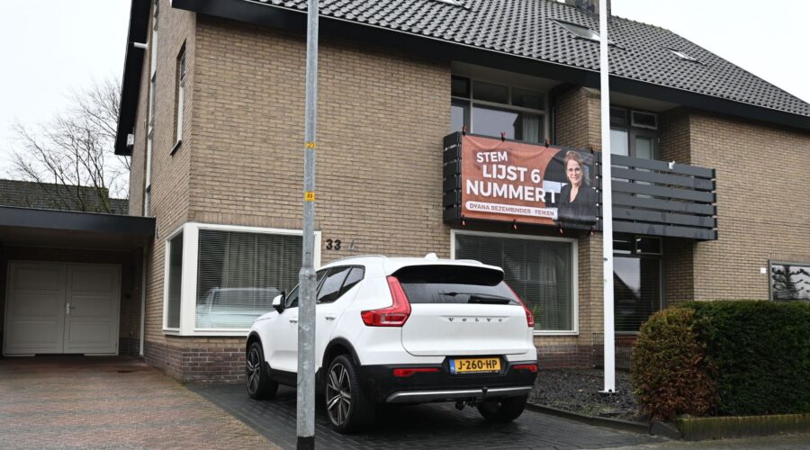 In Nijkerkerveen kan het niemand zijn ontgaan. Op het balkon van haar woning hangt levensgroot het portret van raadslid Dyana Bezembinder. Ze neemt dit jaar voor het eerst met een eigen partij deel aan de gemeenteraadsverkiezingen. Kieslijst 6 is toegewezen aan de partij Voor Ons waarmee woensdag 18 maart wordt deelgenomen aan de verkiezingen. Foto Kees van den Heuvel