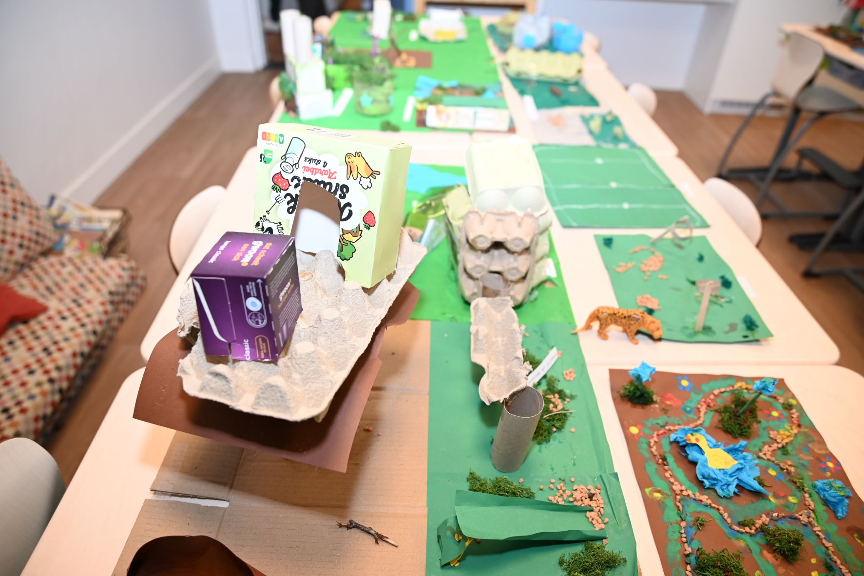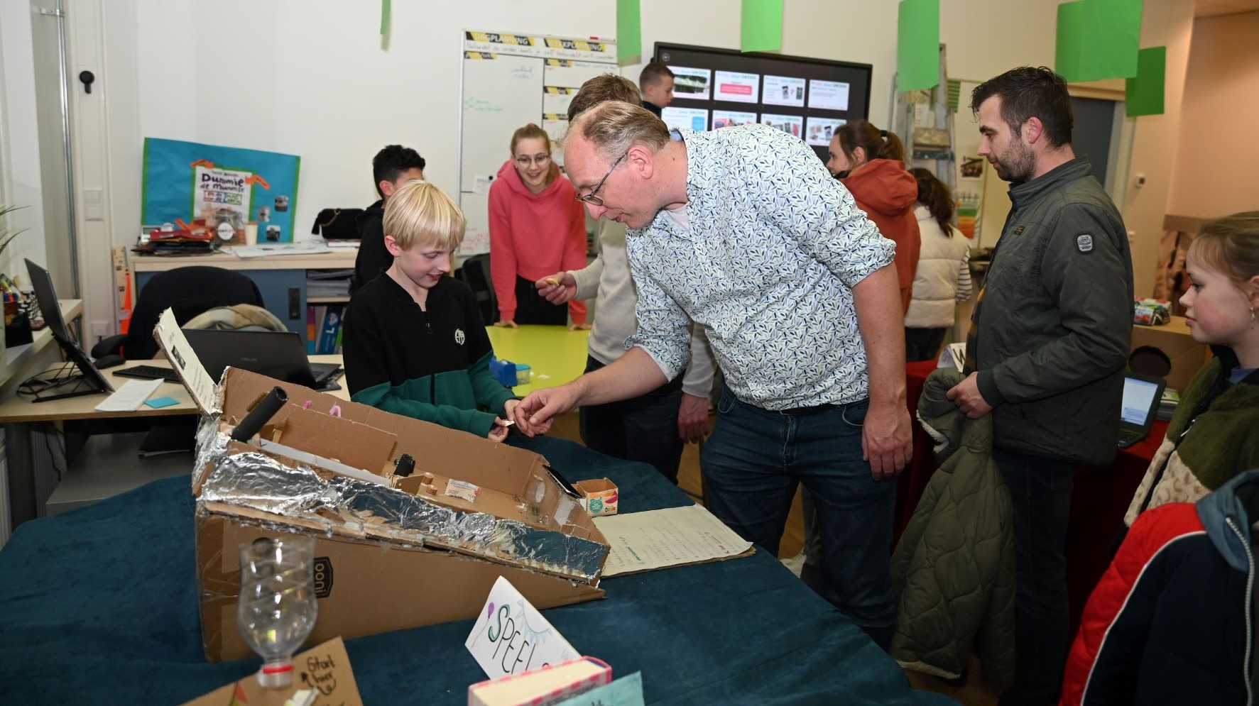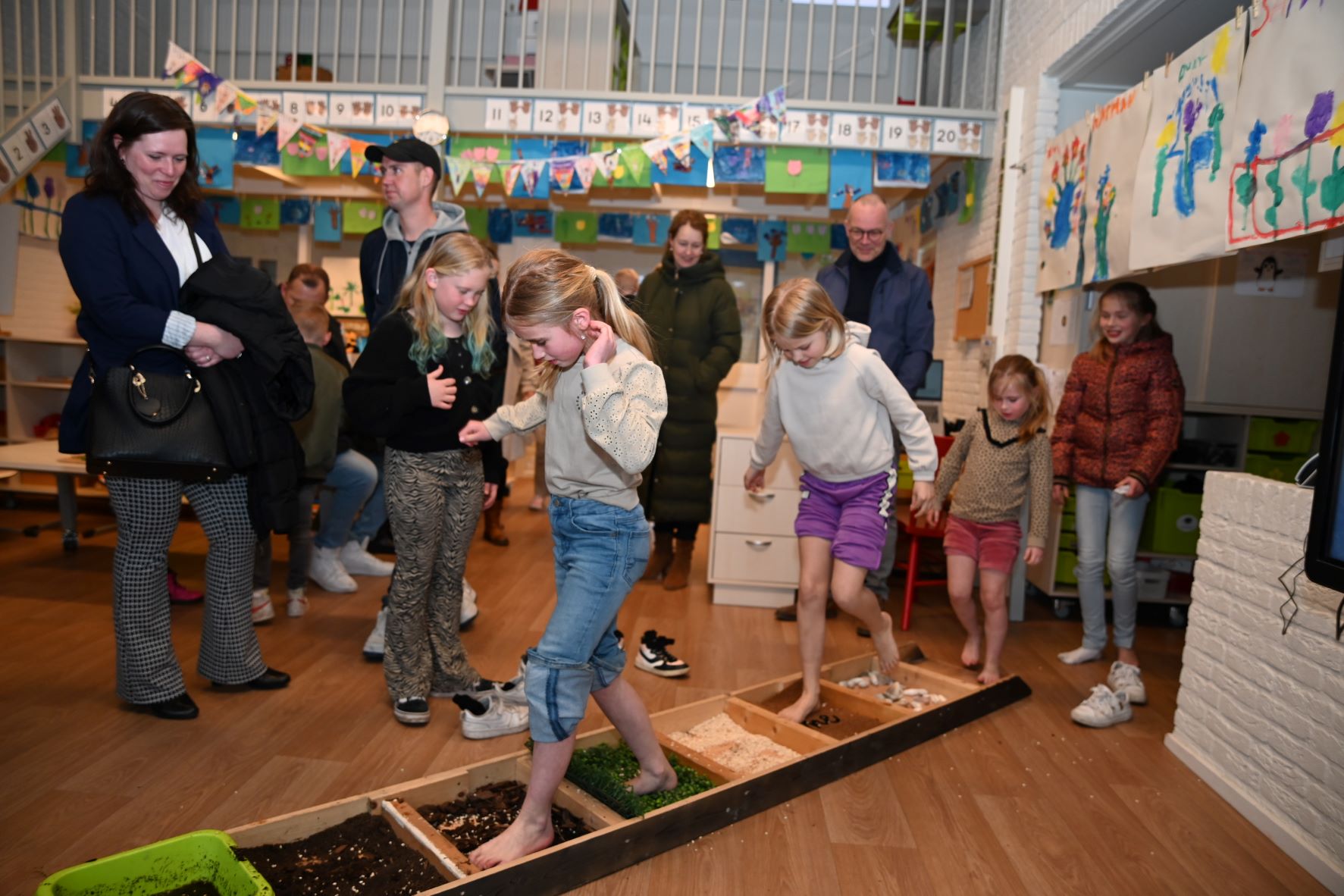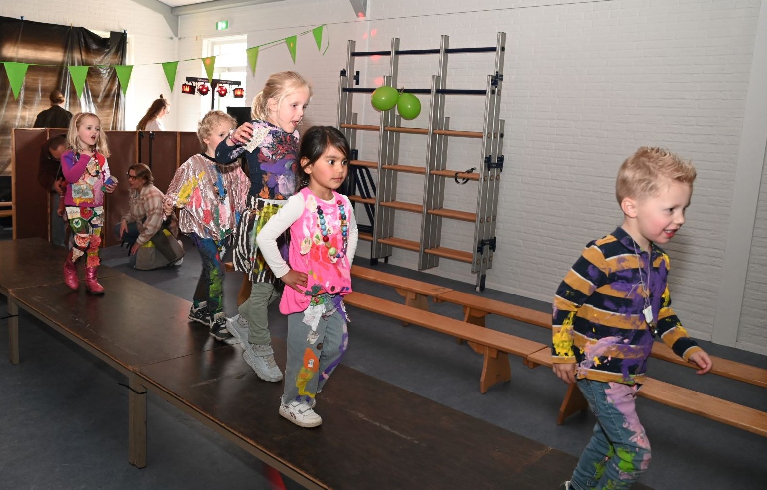 De afgelopen dagen werden allerlei activiteiten ontwikkeld op de Rehobothschool in Nijkerk rondom het project: ‘Rehoboth doet groen’. Dat kende zijn hoogtepunt met een presentatieavond van alle groepen op donderdagavond 18 april. In de onderbouw werden onder meer een modeshow gehouden, liepen de kinderen door grindbakken en was kleding te koop. Verder waren mooie lentebloemen op de ramen geschilderd en van afval allerlei voorwerpen gemaakt. De kinderen zijn voorts op bezoek geweest bij verschillende winkels en gingen buiten op zoek naar afval. Ze schrokken enorm van wat er op straat ligt en hebben het gelijk opgeruimd. Foto Kees van den Heuvel