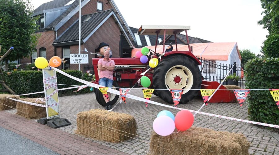 Op 1 augustus 2023 heeft Richard Vreekamp Abraham gezien. Richard is een loonwerker in hart en nieren. En gek op al het boerenwerk. Hij is al vroeg begonnen bij de gebroeders Haverlag. Nadat dit bedrijf stopte heeft hij nog een kort ‘uitstapje’ gemaakt en is uiteindelijk bij BMWW terechtgekomen. Lange werkdagen zijn eerder regel dan uitzondering voor hem. Je kunt Richard al vroeg in de ochtend tegen komen met een dikke Fendt met spuitmachine. Daarom de passende kreet; Geef Richard een dikke Fendt en het wordt een werkdag zonder end! Het opruimen van omgevallen bomen gaat hem wat minder goed af. Bij het doorzagen ervan stond er flink spanning op het hout. Toen de tak door was kreeg hij een flinke zwieperd tegen zijn hoofd en was even ‘van de wereld’. Hij heeft daarna een tijdje met zijn neus in het verband gelopen maar er gelukkig geen blijvende schade aan over gehouden. Voor hobby’s heeft hij natuurlijk geen tijd. Zijn Kreidler staat in de schuur stof te vangen. Je mag hem wel wakker maken voor een goede BBQ of een trekker-trek wedstrijd. En natuurlijk maishakselen. De leeftijd hakt er inmiddels al een beetje in; in zijn spaarzame vrije tijd verplaatst hij zich inmiddels met een elektrische fiets samen met Rita. Hopelijk heeft hij vandaag een snipper opgenomen, anders wordt er nog op hem gerekend! Van harte gefeliciteerd! Foto Kees van den Heuvel