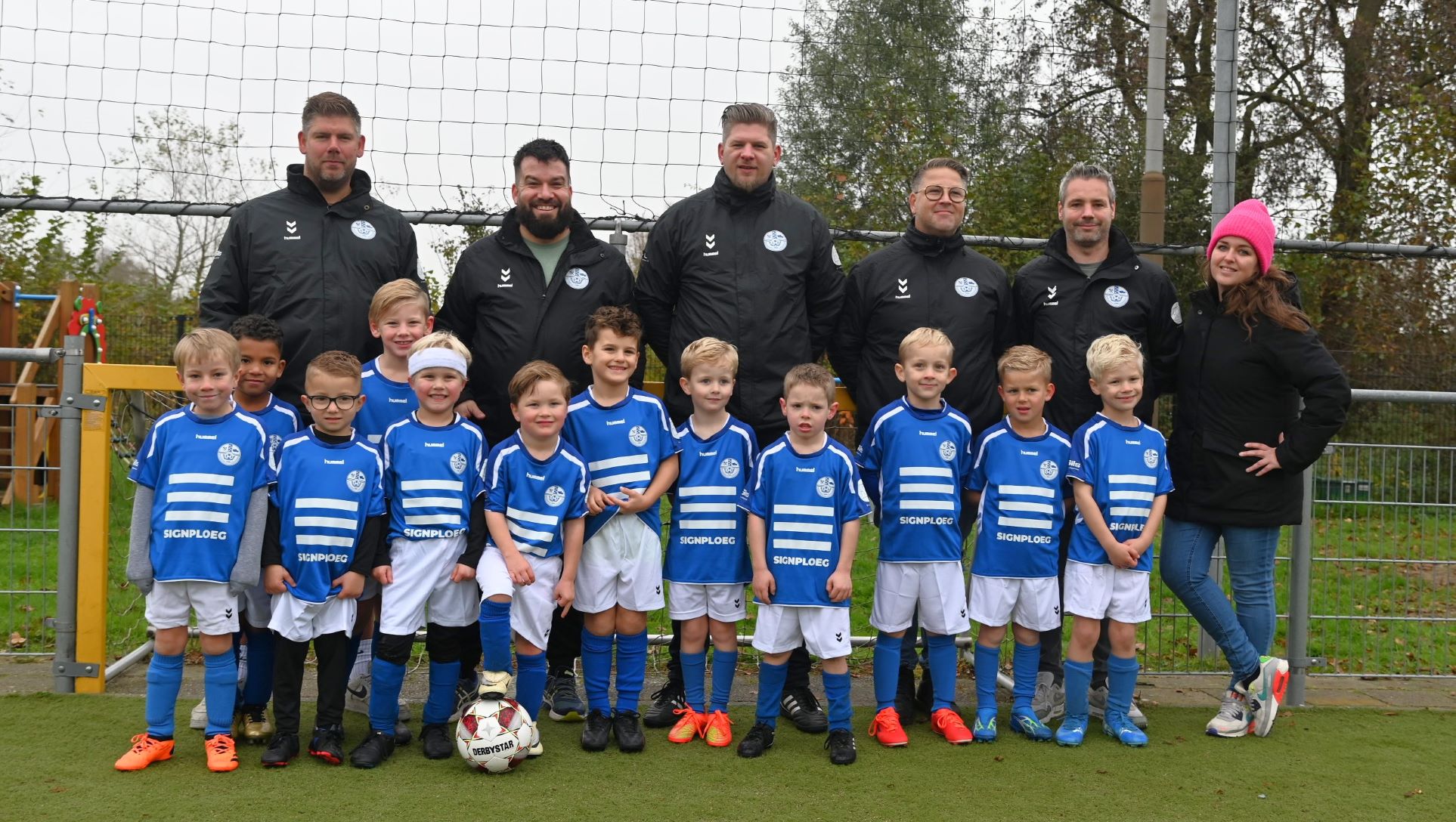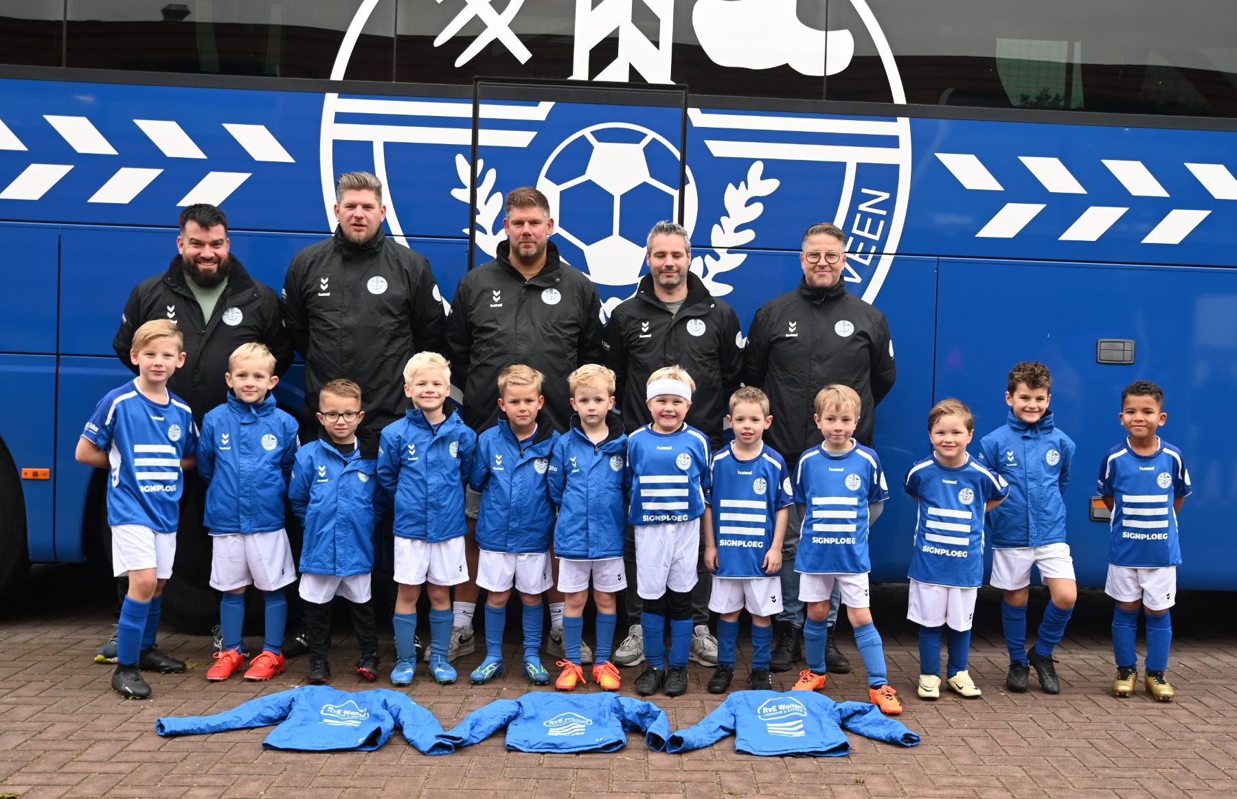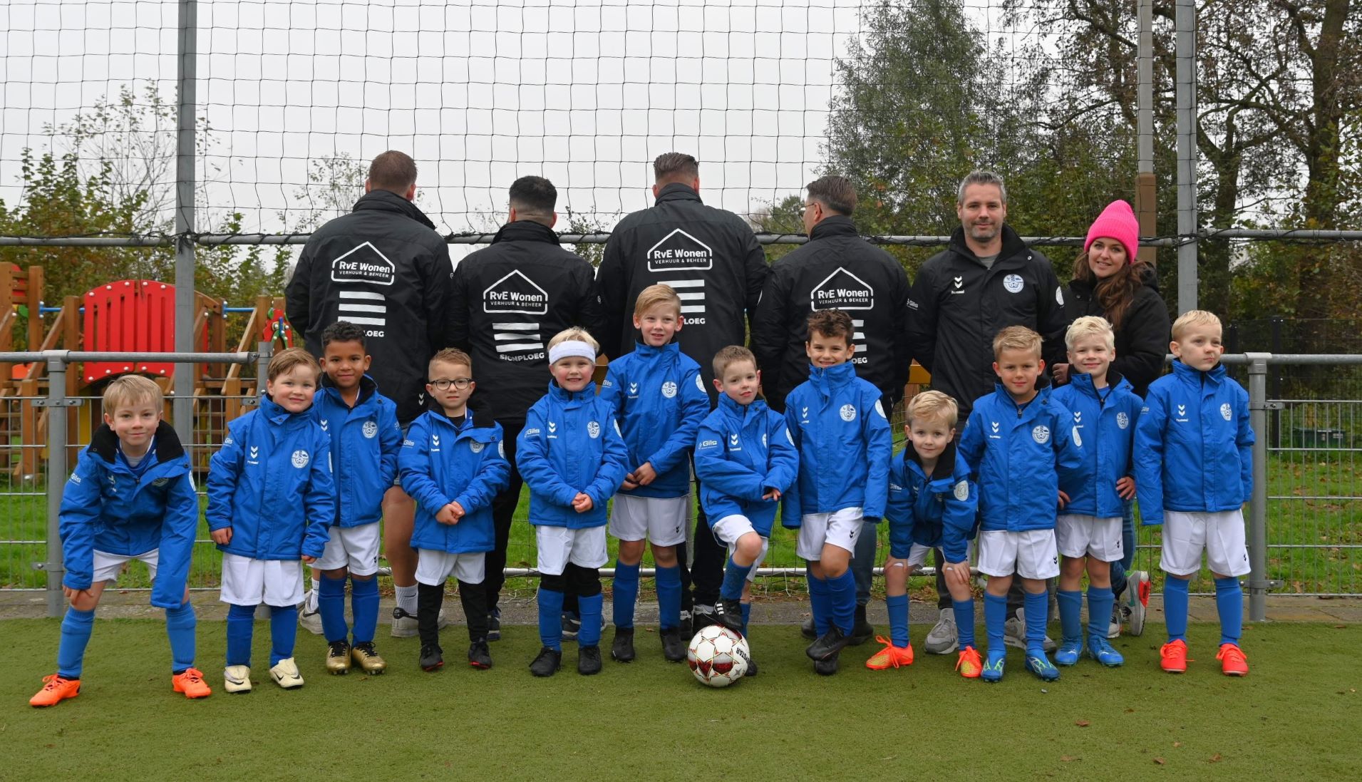 Ze zijn amper het niveau van de Kabouters ontgroeid, maar nu al spelen ze hun eerste wedstrijden op toernooien. Veensche Boys JO7-1 is een feit. Om de jongens representatief voor de dag te laten komen hebben liefst vier sponsoren de handen ineen geslagen om de jongens in het nieuw te steken. Dat zijn RvE Wonen, D-Create, Gils en Signploeg. Het team ontving een nieuw tenue en nieuws warme jassen. Voor hun gulle gaven ontvingen de sponsors een smaakvolle fles Salentein-wijn. Foto Kees van den Heuvel