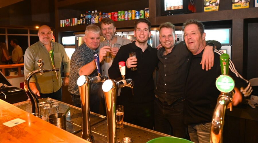 In de sportkantine van voetbalvereniging sc Hoevelaken werd zaterdag 3 januari geproost op een nieuw sportief jaar seizoen. Hieraan ging een klaverjasmarathon aan vooraf. Voorzitter Wim van Vliet maakte bekend dat het eerste elftal een unicum beleefde door komende week op trainingskamp te gaan in Spanje. Dat hebben ze nooit eerder gedaan. Gehoopt wordt op een sportieve tweede seizoenshelft. Aan de staf kan het in elk geval niet liggen, want die heeft bijgetekend. Foto Kees van den Heuvel