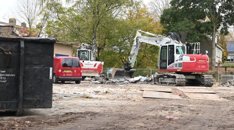 Het oude schoolgebouw van Kindercampus Blokhuus in Hoevelaken bestaat grotendeels niet meer. Sloopbedrijf Donkelaar heeft het zuidelijke deel plat gegooid. Op deze plek verrijst binnenkort een nieuwe schoolgebouw die modulair wordt gerealiseerd. In een ander deel van het oude schoolgebouw krijgen de kinderen les. Zodra het nieuwe schoolgebouw er staat, gaat ook dit gedeelte tegen de vlakte. Tevens wordt hard gewerkt aan het ontwerp van het nieuwe schoolplein. Foto Kees van den Heuvel