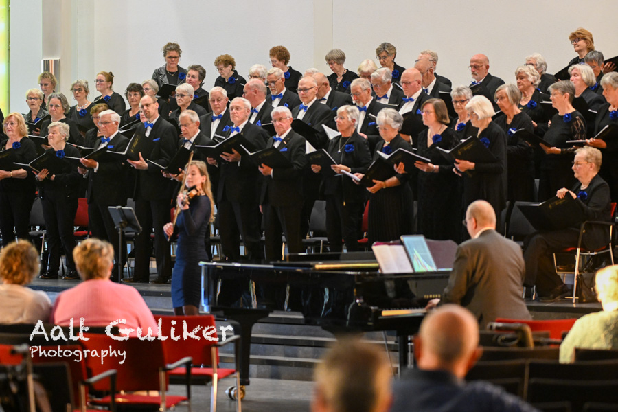 Bijzonder aan deze avond was de bijdrage van een ensemble van ervaren musici. Organist Bert Elbertsen en pianist Wim de Penning zorgden voor een solide muzikale basis, terwijl violiste Chloë Elsenaar en trompettist Henk-Jan Drost extra kleur gaven aan het concert. Hun samenspel met het koor maakte de avond compleet en droeg bij aan een bijzondere muzikale beleving.