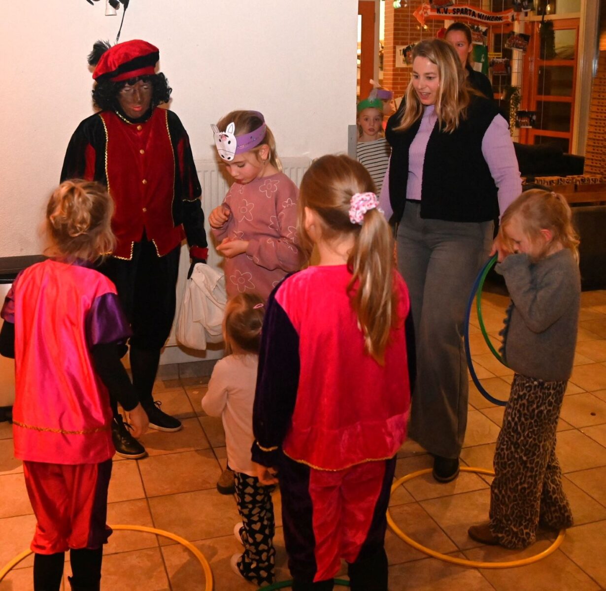 Korfbalvereniging Sparta Nijkerk heeft vrijdagavond 21 november bezoek gehad van Sinterklaas en zijn Pieten. Eerst werd met de Goedheiligman en de kinderen een knakworst gegeten en waren er tal van spelletjes. Daarna mochten de kinderen om de beurt bij Sinterklaas aan tafel zitten en een kleurplaat kleuren. Tot slot van de avond was er voor alle kinderen een cadeau. Foto Kees van den Heuvel