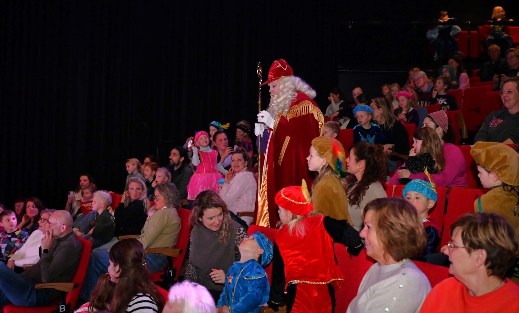 In theater Streams Breede Beek in Nijkerk werd woensdagmiddag 26 november tweemaal een succesvolle Sinterklaasshow gehouden. Ook Juffrouw Aardbei en Hond Max waren daarbij. In de vrolijke Sinterklaasvoorstelling Het Mijterse Chocoladeprobleem kreeg Juffrouw Aardbei onverwachts de taak om het Grote Pietenhuis schoon te maken. Samen met haar hond Max belandde ze in een hilarisch avontuur vol chocolade. Lukt het haar om de mijter op tijd schoon te krijgen of moet Sinterklaas voortaan met een ander hoofddeksel door het leven? Aansluitend aan de voorstelling was er nog een Sinterview waarin de kinderen al hun vragen aan Sinterklaas mochten stellen en uiteraard konden alle bezoekers nog met Sinterklaas op de foto. Foto Kees van den Heuvel