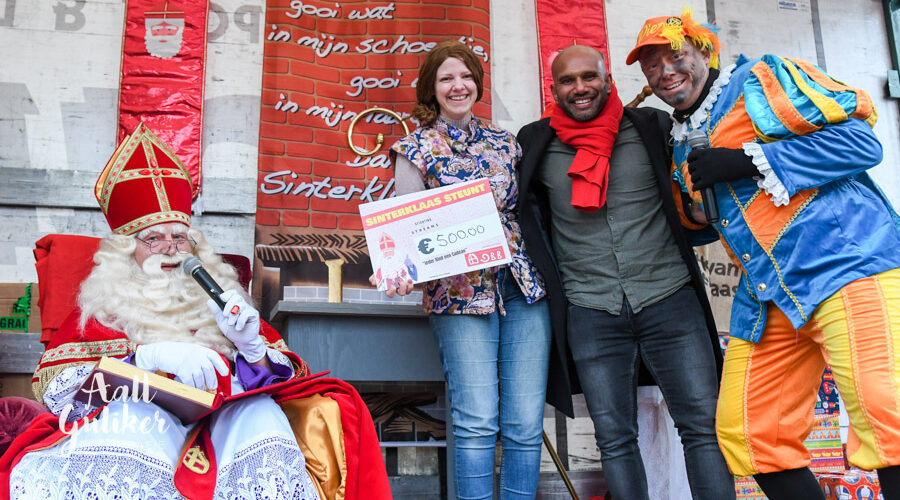 Tijdens de intocht van Sinterklaas in Nijkerkerveen heeft de organiserende Sinterklaasstichting OBB een cheque ter waarde van €500,00 uitgereikt aan Stichting Streams Verlaat7. Deze stichting zet zich in voor minder bedeelde gezinnen en zorgt ervoor dat kinderen – ook wanneer de financiële middelen beperkt zijn – met Sinterklaas, op verjaardagen of tijdens kinderfeestjes toch een cadeautje kunnen krijgen of een traktatie kunnen uitdelen. De bijdrage helpt de stichting om nog meer kinderen een bijzonder moment te bezorgen. Verlaat 7 is tevens een ontmoetingsplek waar iedereen welkom is. Je bent daar van harte welkom om speelgoed te komen ruilen of even te komen kleuren of knutselen. Foto Aalt Guliker