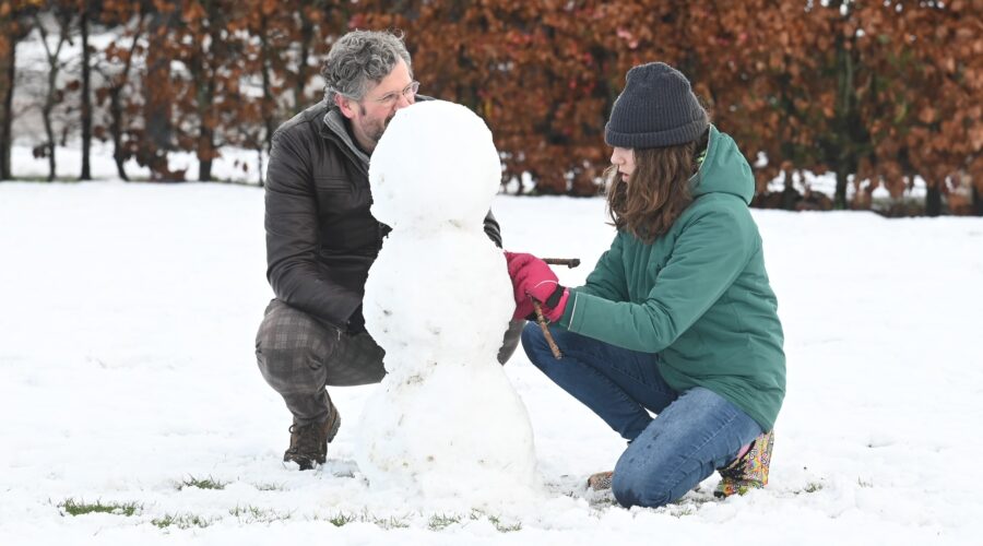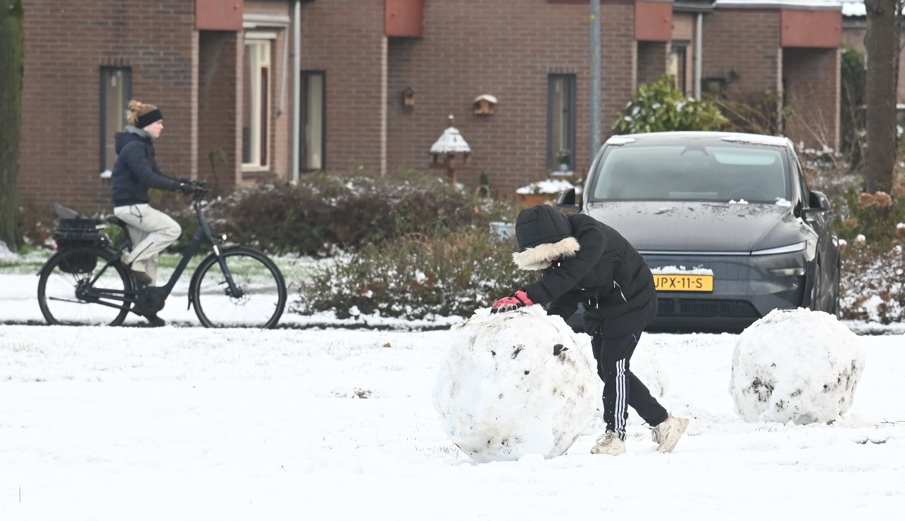 Bij alle overlast zou je het bijna vergeten: de sneeuw zorgt ook voor veel pret. Op veel plekken, ook in Nijkerk, hebben de mensen hun slee tevoorschijn gehaald of ze maken sneeuwpoppen. De beelden zijn gemaakt bij winkelcentrum Paasbos. Foto Kees van den Heuvel