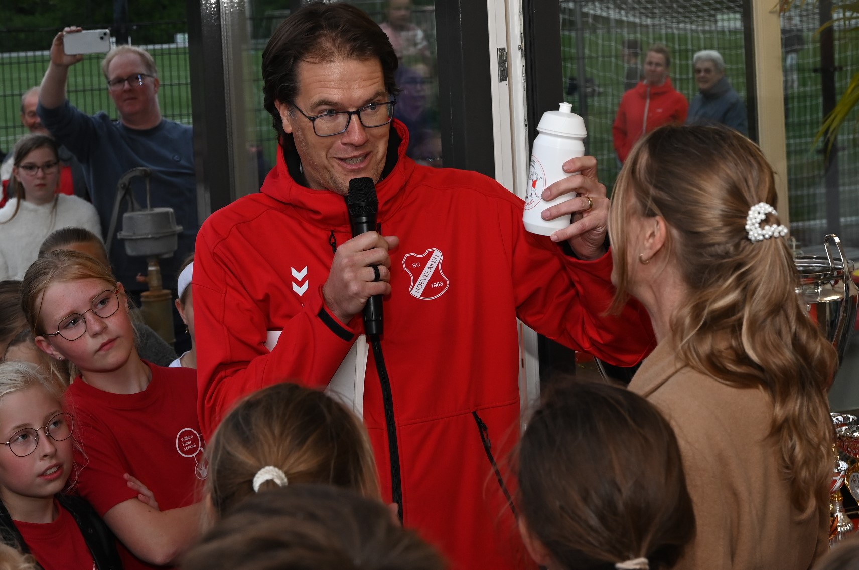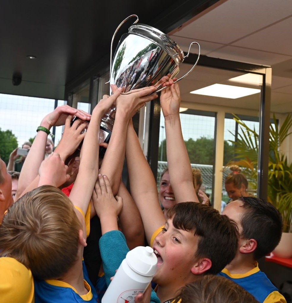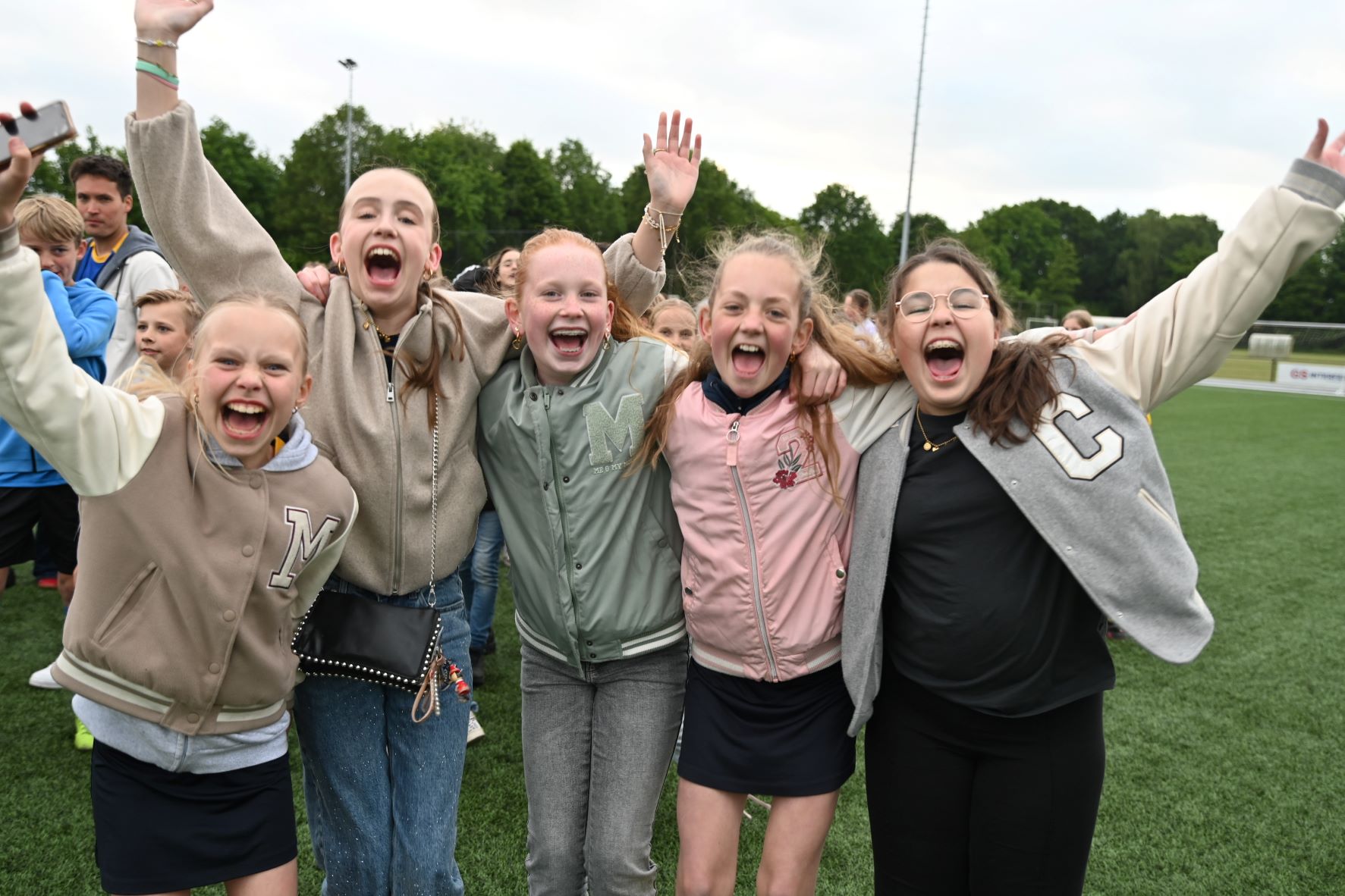 Op de velden van sc Hoevelaken zijn vrijdagavond 16 mei finales gespeeld om het kampioenschap van het schoolvoetbal Hoevelaken, de vijftigste editie. Het leverde een aantal uitermate spannende finales op. Het laatste duel ging tussen de groepen 8 van de jongens van het Blokhuus en de Hoeve en die eindigde in een overwinning voor de mannen van De Hoeve. Het werd 2-0. Bij de groepen 7 tussen de meisjes van Willem Farel en de Hoeve was er een overwinning voor Willem Farel. Bij de groepen 7 van de jongens won De Hoeve van de Schimmelpenninck van der Oye school. Verder was er nog een finale tussen de groepen 8 van de meisjes. Het Blokhuus werd hier de winnaar. Die wonnen van de Spreng. De winnaars kregen de bekers overhandigd door burgemeester Tinet de Jonge die bijna als een popster werd behandeld. Ze moest regelmatig op de foto. In verband met vijftig jaar schoolvoetbal in Hoevelaken was een speciale bidon gemaakt en langs de gevel van het clubgebouw hing een fototentoonstelling. Foto en Kees van den Heuvel