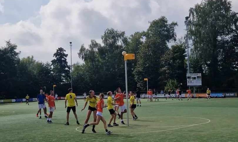 Korfbalvereniging Sparta Nijkerk/Djops heeft zaterdag een startdag georganiseerd. Dat begon met de jeugdleden met een kat en muisspel, waaraan ook selectiespelers deelnamen. De selectiespelers gingen daarna ’s middags aan de slag met een eerste oefenwedstrijd en die werd verloren. De dag werd afgesloten met een barbecue. Foto Kees van den Heuvel e.a.