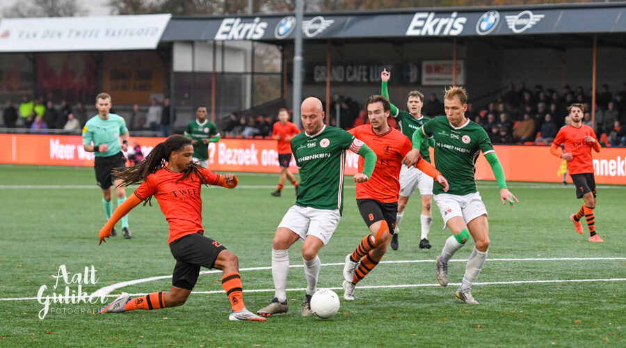 De regioderby tussen Sparta Nijkerk en DOVO is geƫindigd in een gelijkspel. Op de Ebbenhorst werd het 1-1. De enige goal namens de Nijkerkers werd gemaakt door Roy Bakkenes. Hij mocht even later meteen de douches opzoeken en werd vervangen door Christos Ibrahim. Direct daarna was er een wonderschoon doelpunt van Maxim van Peer die zorgde voor de eindbalans, want in de tweede helft werd er niet meer gescoord. Wel werd een goal van Omar El Ghazouani afgekeurd vanwege buitenspel en ging een vrije schotkans in de slotminuten hoog over. Na dertien wedstrijden staat Sparta Nijkerk op de zevende plaats met 23 punten, DOVO staat op plek negen met 18 punten. Tekst: Kees van den Heuvel.