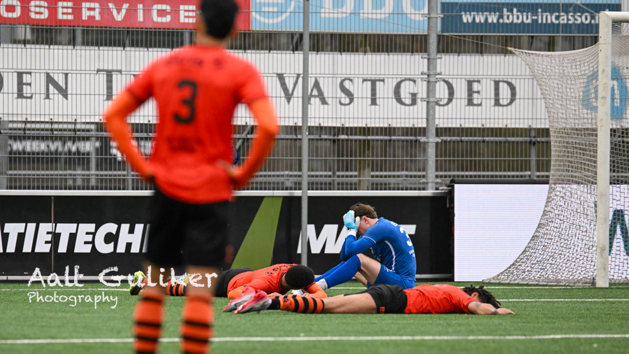 verwijten qua energie en qua inzet maar het was kwalitatief vandaag.” Het is echter volgens hem nog geen game-over voor wat betreft de titel. ,,Ze staan acht punten voor en ze moeten ook nog de inhaalwedstrijd tegen DOVO nog maar zien te winnen. Daarnaast heb je nog heel veel ploegen die van Rohda kunnen winnen.” Tekst: Kees van den Heuvel. Interview: Mark Kloostra.