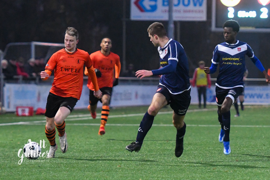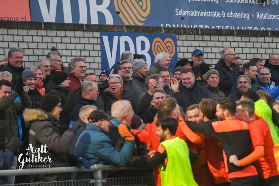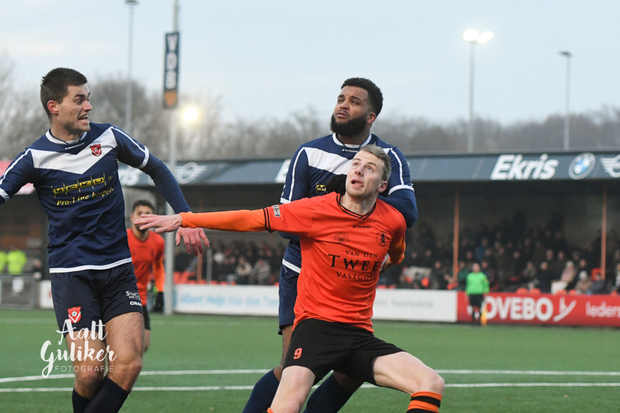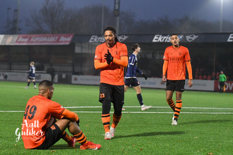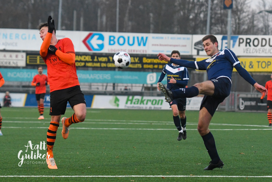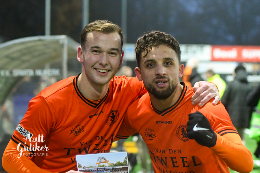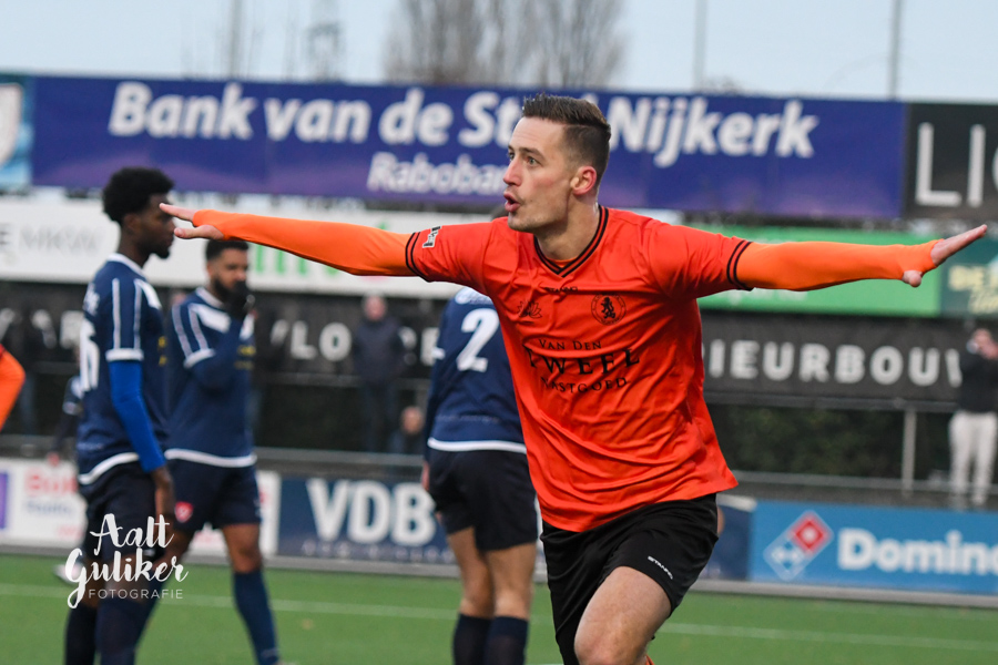 Een waar spektakelstuk zaterdag 2 december op de Ebbenhorst in Nijkerk. Sparta Nijkerk gaf aanvankelijk een 2-0 voorsprong uit handen tegen koploper Harkemase Boys, maar wist in de tweede helft toch het verschil te maken. Even voor tijd kwamen de Nijkerkers op voorsprong en in blessuretijd werd zelfs de 4-2 gemaakt. Sparta Nijkerk klimt met dit resultaat naar een vierde plek. Doordat concurrent Genemuiden gelijkspeelde, behoudt de ploeg uit Harkema wel de eerste plaats in de derde divisie. De doelpuntenmakers namens de Spartanen waren: Thomas van Dijk, eigen doelpunt (maar met grote vinger in de pap van Jesse Buitenhuis), Mark van der Weijden en Tyrone Fonville. Tekst: Kees van den Heuvel. Foto’s: Aalt Guliker. Interview: Mark Kloostra