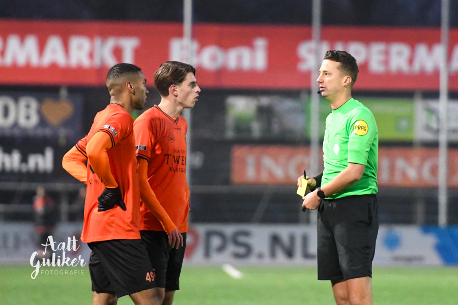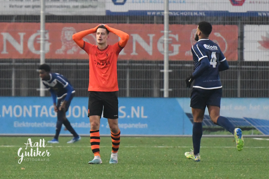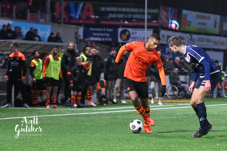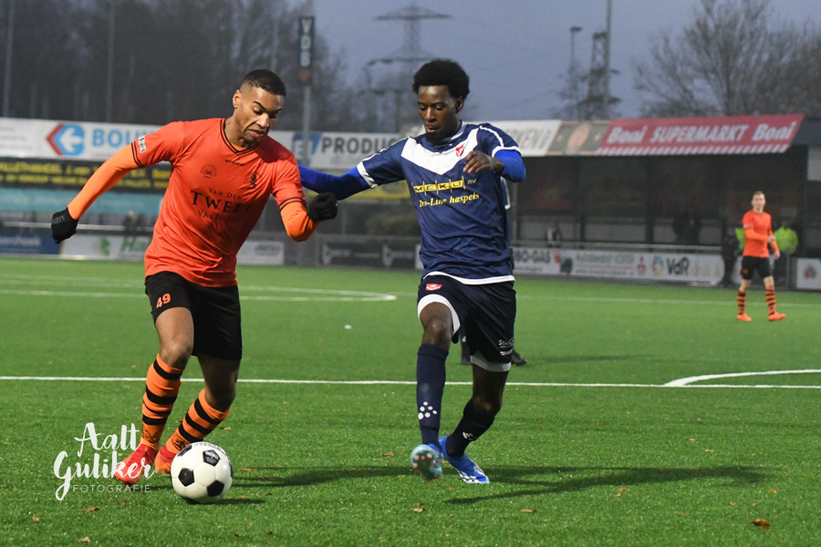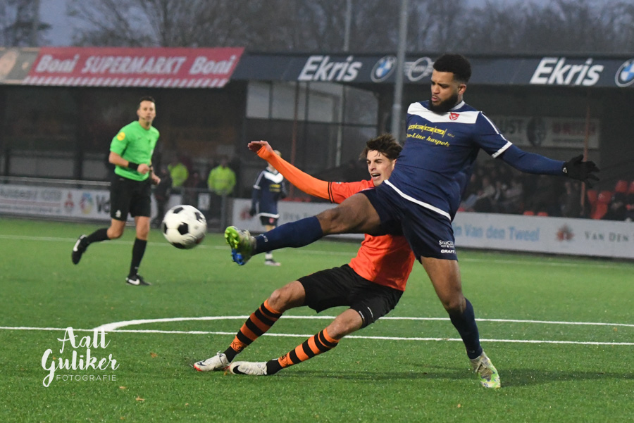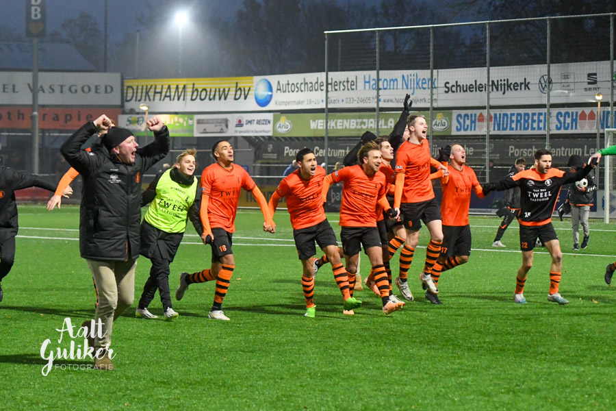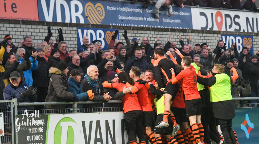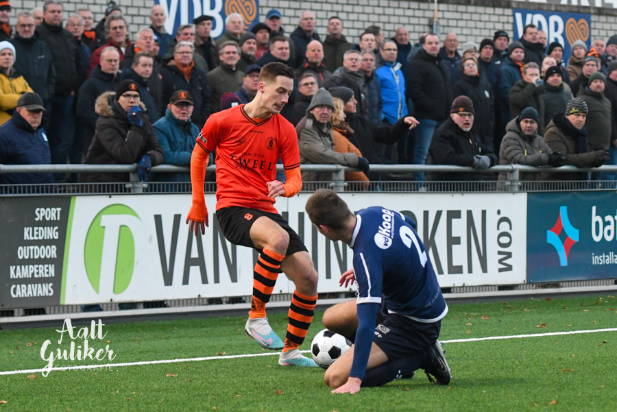 Een waar spektakelstuk zaterdag 2 december op de Ebbenhorst in Nijkerk. Sparta Nijkerk gaf aanvankelijk een 2-0 voorsprong uit handen tegen koploper Harkemase Boys, maar wist in de tweede helft toch het verschil te maken. Even voor tijd kwamen de Nijkerkers op voorsprong en in blessuretijd werd zelfs de 4-2 gemaakt. Sparta Nijkerk klimt met dit resultaat naar een vierde plek. Doordat concurrent Genemuiden gelijkspeelde, behoudt de ploeg uit Harkema wel de eerste plaats in de derde divisie. De doelpuntenmakers namens de Spartanen waren: Thomas van Dijk, eigen doelpunt (maar met grote vinger in de pap van Jesse Buitenhuis), Mark van der Weijden en Tyrone Fonville. Tekst: Kees van den Heuvel. Foto’s: Aalt Guliker. Interview: Mark Kloostra