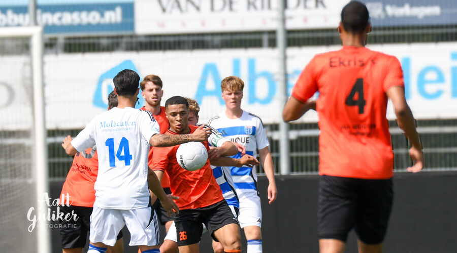 Sparta Nijkerk kan met een gerust hart uitkijken naar de seizoensstart, volgende week zaterdag tegen Huizen. De laatste oefenwedstrijd tegen PEC Zwolle onder 21 werd 9 augustus overtuigend gewonnen met 5-0. Vier goals daarvan vielen in een zeer attractieve eerste helft. Wie anders dan Pieter Veenstra maakte de eerste goal na een kwartier. Daarna lagen de Zwollenaren nadrukkelijk op de pijnbank. Goals waren er vervolgens van Christos Ibrahim (2-0), Victor van der Linde (3-0 en Jason Sumter (4-0). Na rust was er ook nog een goal van Tim Pieters. Verslag: Kees van den Heuvel. Foto’s: Aalt Guliker.
