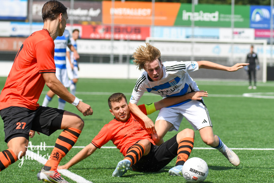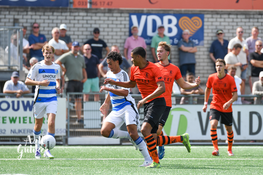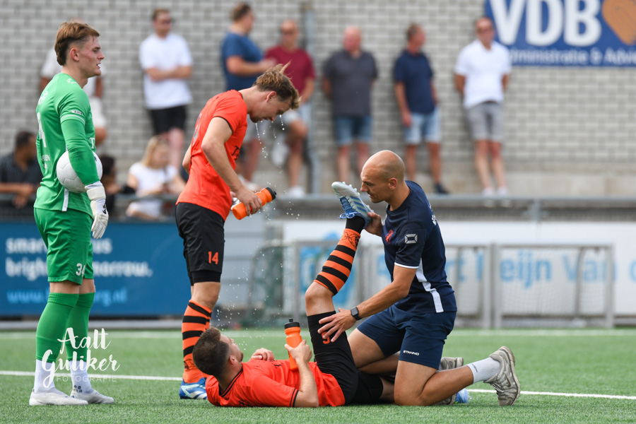 Sparta Nijkerk kan met een gerust hart uitkijken naar de seizoensstart, volgende week zaterdag tegen Huizen. De laatste oefenwedstrijd tegen PEC Zwolle onder 21 werd 9 augustus overtuigend gewonnen met 5-0. Vier goals daarvan vielen in een zeer attractieve eerste helft. Wie anders dan Pieter Veenstra maakte de eerste goal na een kwartier. Daarna lagen de Zwollenaren nadrukkelijk op de pijnbank. Goals waren er vervolgens van Christos Ibrahim (2-0), Victor van der Linde (3-0 en Jason Sumter (4-0). Na rust was er ook nog een goal van Tim Pieters. Verslag: Kees van den Heuvel. Foto’s: Aalt Guliker.