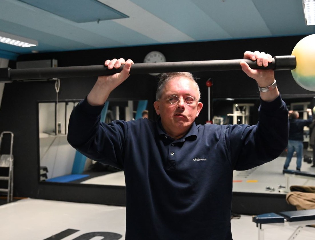 Elke dinsdagavond biedt sportschool Rebel in Nijkerk fitness aan personen met een beperking. Het is een groep met een beperkt aantal mensen, om iedereen voldoende aandacht te geven. De sporters zelf hebben er de grootste lol in en voor hen is het naast een sportieve uitdaging ook een sociaal uitje, aldus trainer Joey Meijer, die de groep al vele jaren onder zijn hoede heeft. Het vergt weliswaar een andere aanpak – hij is er speciaal voor opgeleid – maar de voldoening is groot. Er is overigens nog een paar plekjes vrij. Foto’s Kees van den Heuvel