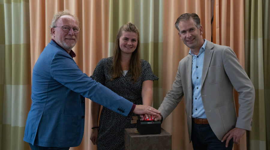 Na een welkomstwoord van Eva van de Ridder en inleidende woorden van Pieter Immerzeel, wethouder Maarten Reckman en Arend Jan Poelarends, is het dan zover. Met een druk op de knop is de leerafdeling officieel geopend.