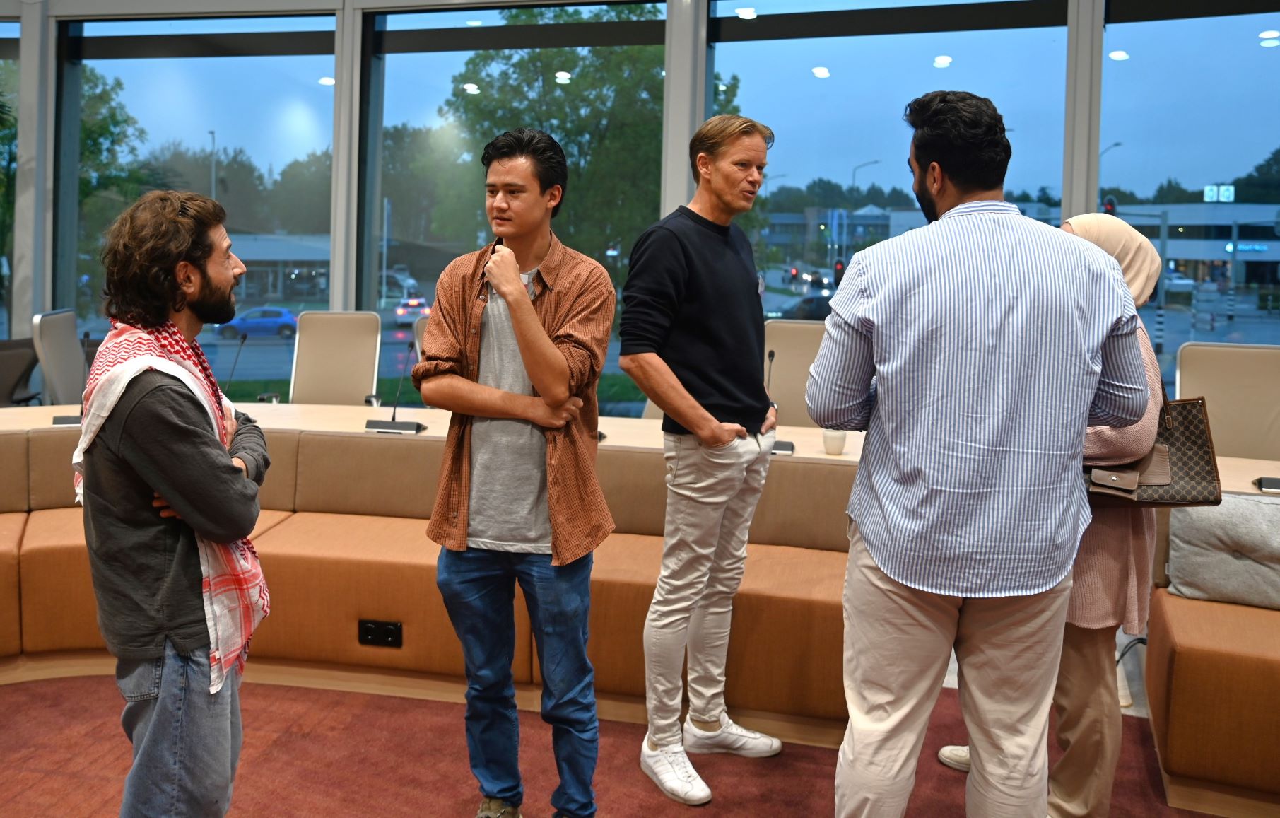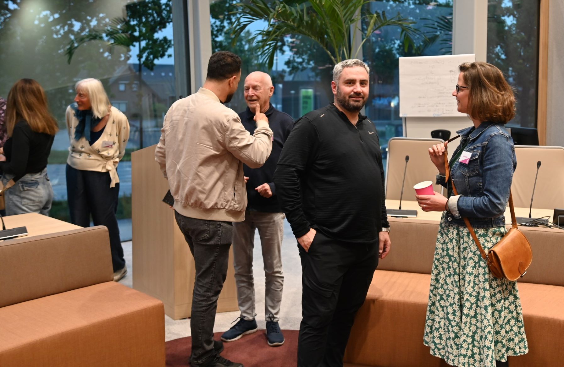 Op het gemeentehuis van Nijkerk vond maandagavond 6 oktober wederom het initiatief Buddy to Buddy plaats. Daarbij worden vluchtelingen en Nijkerkse burgers op basis van gemeenschappelijke interesses én gelijkwaardig aan elkaar gekoppeld en nuttigen ze samen een maaltijd. Naast professionele hulp is er onder nieuwkomers een grote behoefte aan persoonlijk contact met Nederlanders. Tegelijkertijd zijn er in Nijkerk veel mensen die graag hun wereld willen openstellen voor iemand uit een ander land. Zo ontstaan bijzondere ontmoetingen en vriendschappen tussen mensen die elkaar anders nooit hadden ontmoet. Gelijkwaardig contact, van mens tot mens – dát is waar Buddy to Buddy voor staat. In de ruim twintig gemeenten waar Buddy to Buddy al actief is, zijn er talloze mooie matches ontstaan. Buddy to Buddy brengt nieuwkomers en betrokken inwoners van Nijkerk op een natuurlijke, warme manier met elkaar in contact. “Door samen tijd door te brengen, leer je elkaar kennen en ontdek je hoe waardevol dat kan zijn. Dat gunnen we de inwoners én nieuwkomers van Nijkerk ook” aldus Joni Reiche, een van de twee kartrekkers van de pilot in Nijkerk. Jaren geleden startte de oorspronkelijk Syrische Ehab el Haddad zelf als buddy, en met veel plezier start hij nu als kartrekker in Nijkerk. “Die ene persoon die je uitnodigt voor een kop koffie, een wandeling of die je meeneemt naar een feestje – dat voelt als een heel warm welkom.” Foto Kees van den Heuvel