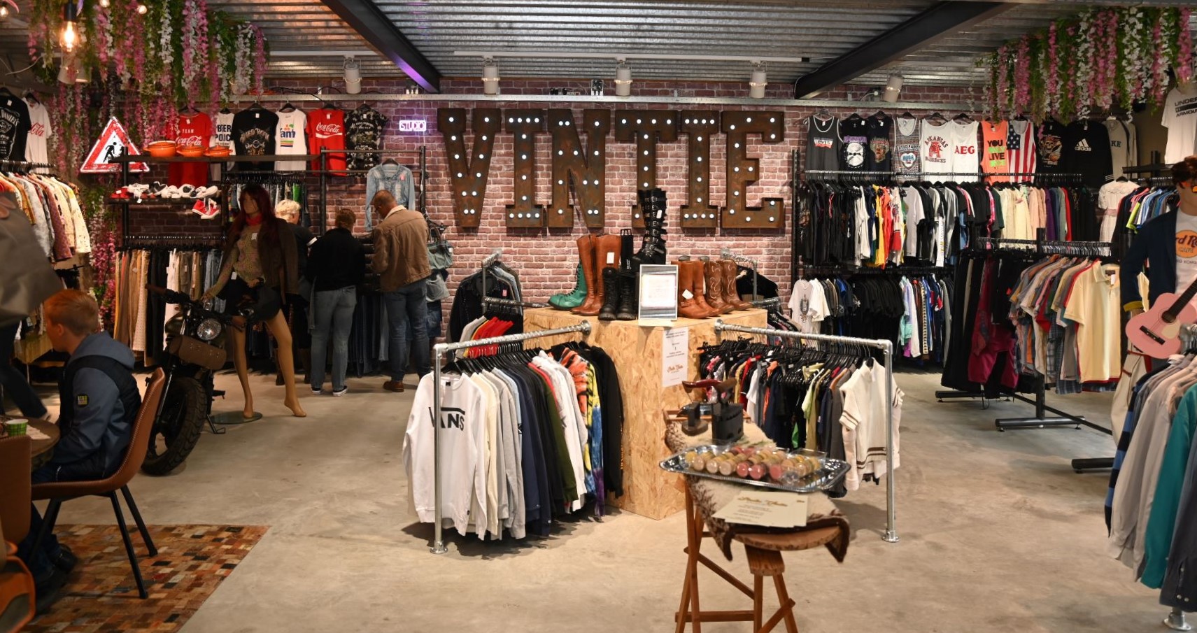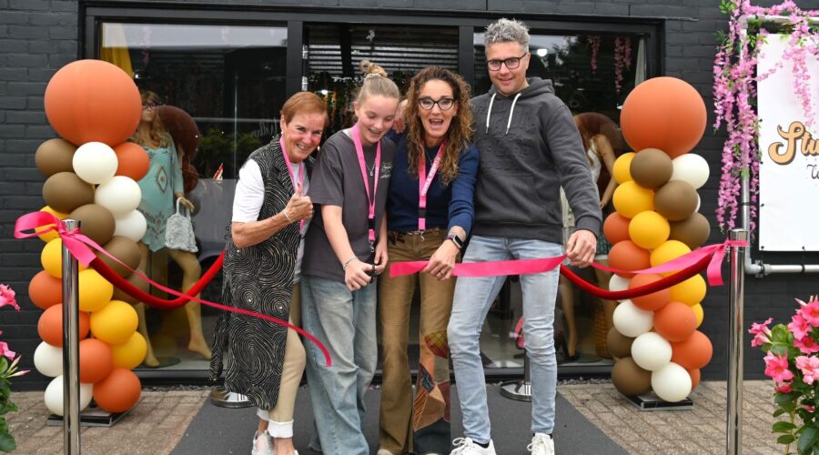 In Hoevelaken is zaterdag 24 mei Studio Vintie geopend aan de Oosterinslag 9. Het is een vintage winkel met voornamelijk hippe merkkleding. Het is gevestigd in het oude pand van Sunreflex Zonwering. Eigenaresse Jacoliem Dekker, oud eigenaar van het zonweringbedrijf, zag dat het pand leeg stond en besloot om weer actief te worden, en nu in de kleding. Haar dochter Jill mocht zaterdag de opening verrichten door een lint door te knippen. Foto Kees van den Heuvel