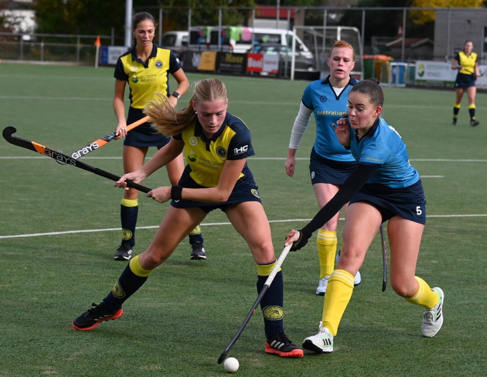 Tijdens Super Sunday op het complex van de Hockeyclub Nijkerk (de eerste teams van dames en heren moeten thuis spelen) hebben de dames van HCN zondag 29 oktober helaas verloren van Overbetuwe. De einduitslag was 1-3. In het eerste kwart werd het 0-1 voor de tegenstander. Daarna kwam Nijkerk goed terug met een doelpunt uit een strafcorner, 1-1 gemaakt door Daphne Tijsseling. In het tweede kwart werd door de tegenstander 1-2 gemaakt en ze kregen bovendien een groene kaart. In het derde kwart maakte Overbetuwe de 1-3 en er was een tweede groene kaart. In het vierde kwart had Nijkerk de overhand, maar de dames wisten niet meer te scoren. Tot slot was er nog een groene kaart voor Overbetuwe. De uitslag van de heren volgt later. Foto Kees van den Heuvel