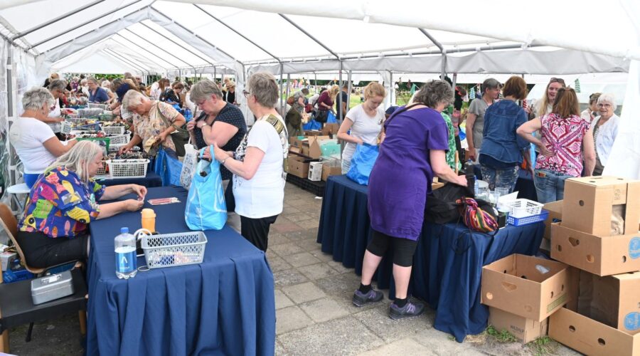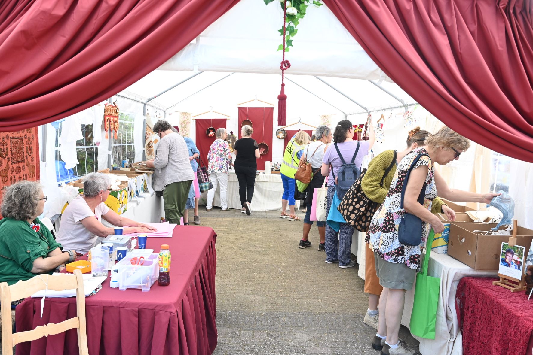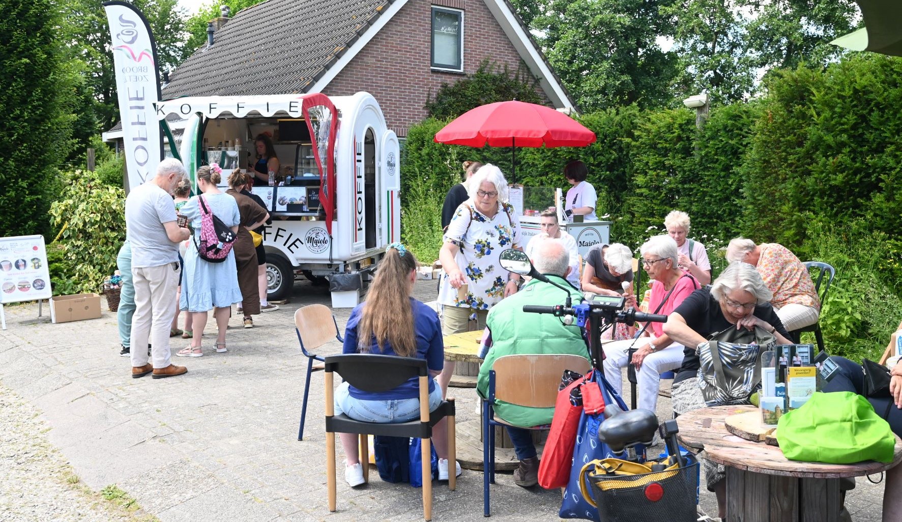 Vrijdag 28 juni is op de Hogebrinkerweg in Hoevelaken de zestiende editie van het Handwerkfestijn van start gegaan. Er waren liefst drie parkeerplekken opengesteld, zo druk was het. De opbrengst is voor genezing van diabetes type 1 het Diabetes Fonds. Het Handwerkfestijn is ook zaterdag 29 juni te bezoeken. Harry en Mieke van de Brug van Harco Hoveniers hebben hun erf weer belangeloos beschikbaar gesteld, zodat er weer 9 partytenten konden worden opgezet. Foto Kees van den Heuvel