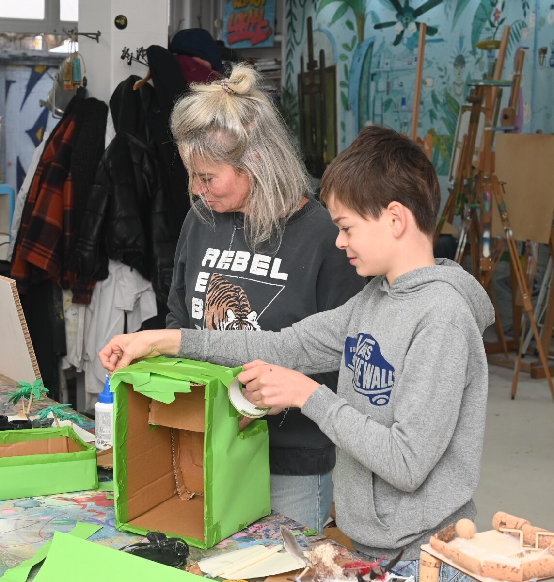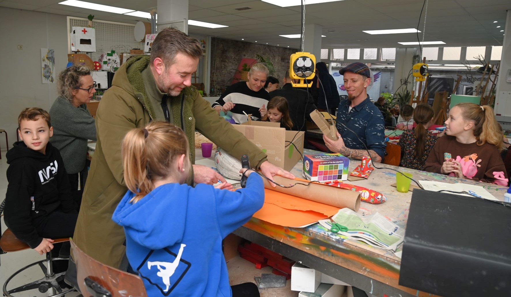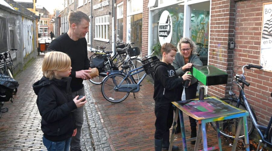 Creatieve kinderen konden zaterdagmorgen 25 november terecht bij het Kunstlokaal Nijkerk aan de Kloosterstraat. Daar konden surprises worden gemaakt voor het komende Sinterklaasfeest. Zowel in het atelier binnen als buiten (airbrush) werd er geknutseld. Foto Kees van den Heuvel