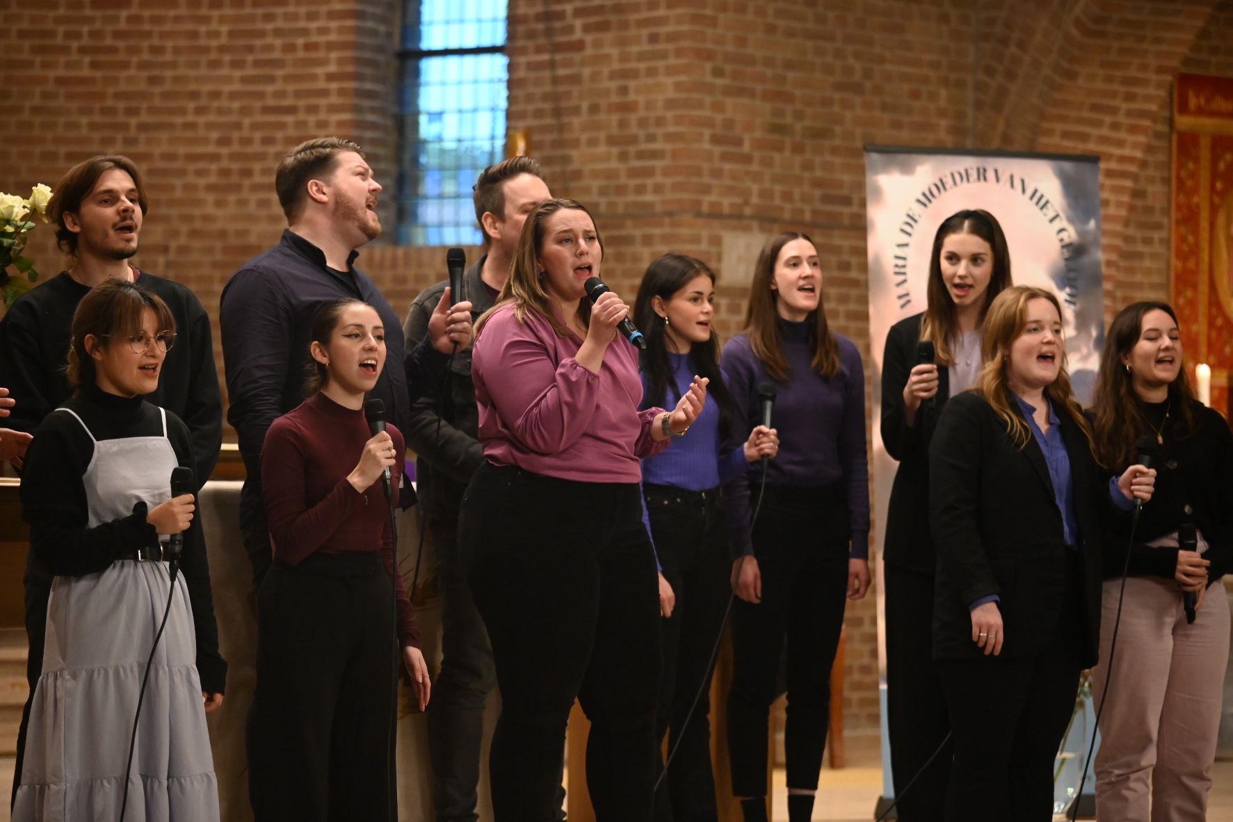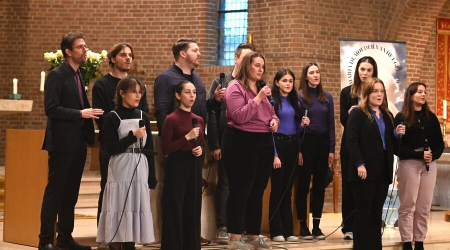 Zondagmiddag 26 november trad het Koor Milk & Honey op in de Rooms-Katholieke Sint CatharinaKerk in Nijkerk met hun Hope Tour. En zoals de naam al aangeeft, wilden ze vooral hoop, liefde en verbinding bieden, iets dat onbetaalbaar is. Ze brachten bij iedere song een roos naar Maria en vervolgens was het muzikaal genieten geblazen, onder meer met muziek van Michael Jackson en John Lennon. Tussendoor vertelde pastoor Harrold Zemann en andere sprekers inspirerende verhalen. Door klassiekers en eigentijdse muziek was de gebedsviering voor iedereen geschikt, ongeacht leeftijd of religieuze achtergrond. Foto Kees van den Heuvel