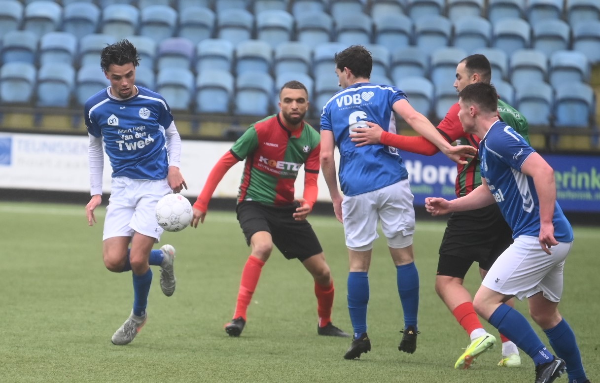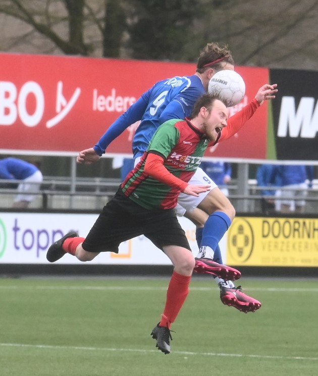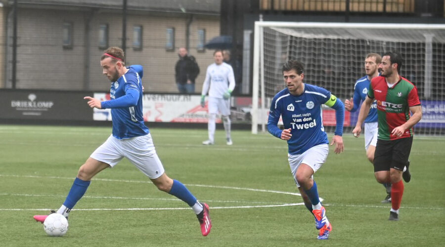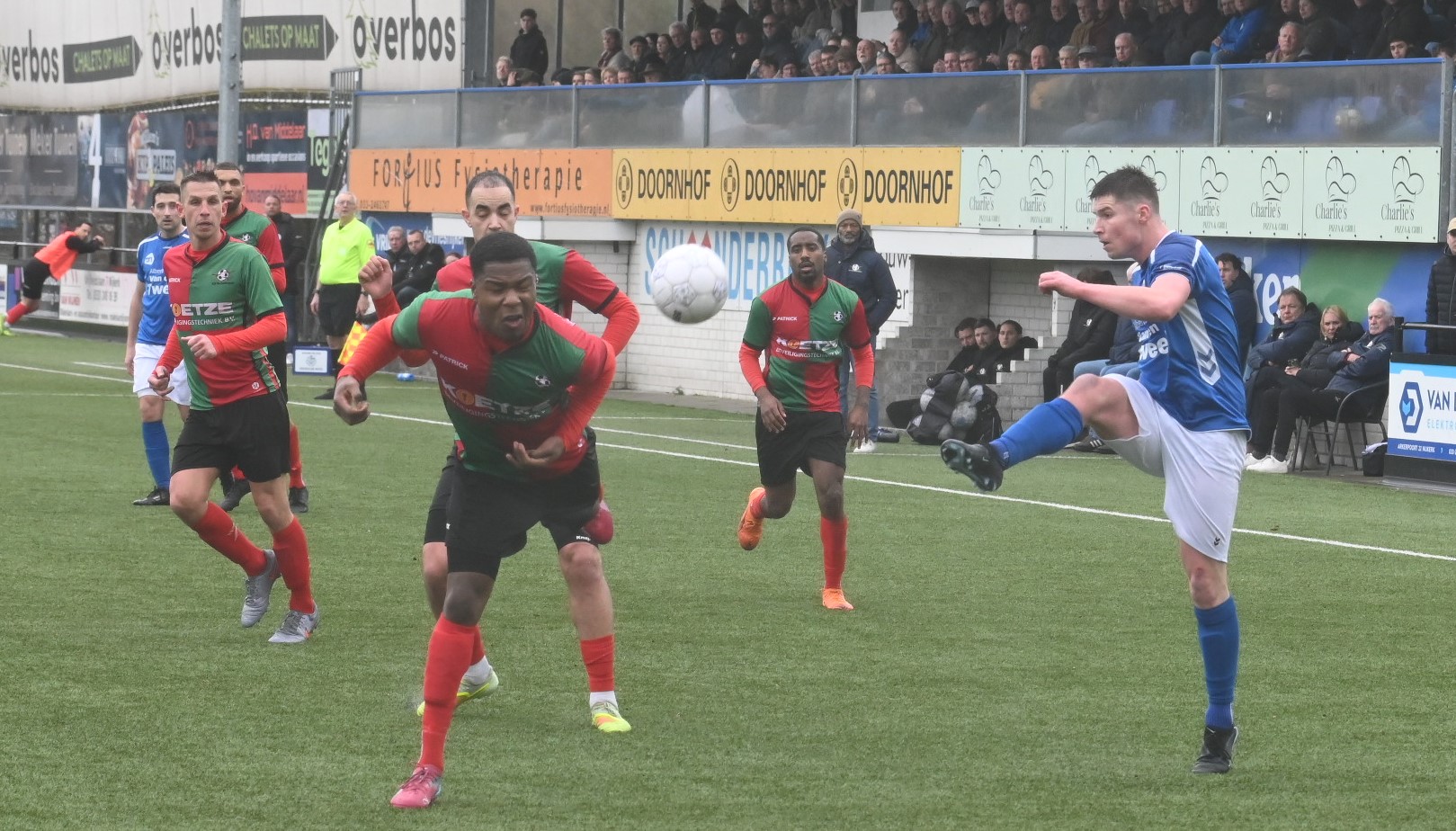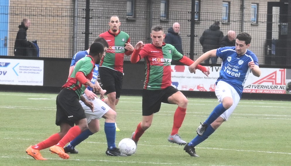 Ondanks dat De Zuidvogels rode lantaarndrager is in de eerste klasse, was Veensche Boys op haar hoede. De club uit Huizen had zich na de winterstop versterkt met vijf grote namen, waaronder ex-prof Melvin Platje, en had sindsdien ook niet meer verloren. Op technisch gebied was De Zuidvogels inderdaad een tijdje de meerdere van Veensche Boys, maar de club uit Nijkerkerveen beschikte over het voetballend vernuft in de best wel grillige wedstrijd. Het resulteerde na ruim een kwartier spelen in de 1-0 voor Veensche Boys. Corné Parol brak door de achterste linies van de tegenstander. Hij was niet zelfzuchtig maar behield het overzicht. Hij zag naast hem aanvoerder Yannick Bouw naar de goal snellen, gaf de bal breed, en Bouw hoefde de bal er alleen maar in te schuiven. Vijf minuten later was er een identieke situatie: Parol leverde noeste arbeid en Yannick Bouw scoorde opnieuw. Na rust ging Veensche Boys op dezelfde voet verder, maar vergat te scoren. Tot ieders grote verrassing wist De Zuidvogels wel het net te vinden via een kopbal van middenvelder Kenny Teijsse. Het motiveerde de opponent zodanig dat De Zuidvogels meer kansen ging ruiken. Alle hoop ging echter verloren toen Michel Goossensen met een ver afstandsschot de keeper van De Zuidvogels wist te verschalken. De bal werd daarbij van richting veranderd via de schouder van een speler van De Zuidvogels. Veensche Boys ging galery play spelen en produceerde ook nog de 4-1, eveneens via een een-tweetje tussen Parol en Bouw. Foto Kees van den Heuvel