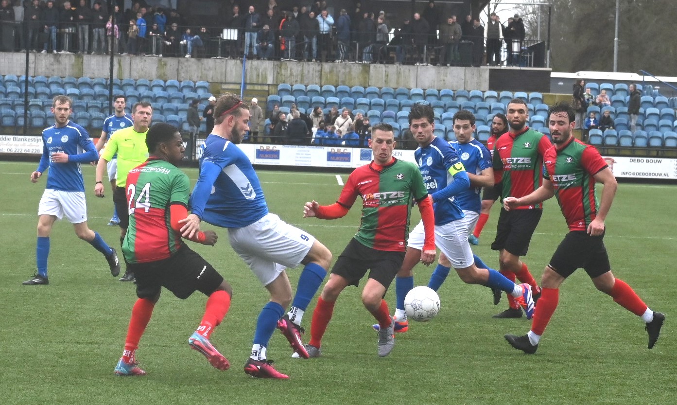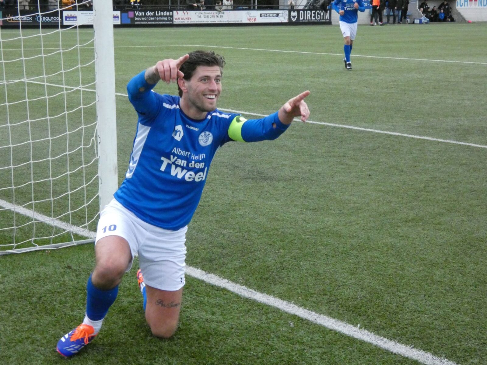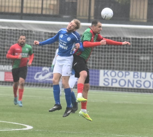 Ondanks dat De Zuidvogels rode lantaarndrager is in de eerste klasse, was Veensche Boys op haar hoede. De club uit Huizen had zich na de winterstop versterkt met vijf grote namen, waaronder ex-prof Melvin Platje, en had sindsdien ook niet meer verloren. Op technisch gebied was De Zuidvogels inderdaad een tijdje de meerdere van Veensche Boys, maar de club uit Nijkerkerveen beschikte over het voetballend vernuft in de best wel grillige wedstrijd. Het resulteerde na ruim een kwartier spelen in de 1-0 voor Veensche Boys. Corné Parol brak door de achterste linies van de tegenstander. Hij was niet zelfzuchtig maar behield het overzicht. Hij zag naast hem aanvoerder Yannick Bouw naar de goal snellen, gaf de bal breed, en Bouw hoefde de bal er alleen maar in te schuiven. Vijf minuten later was er een identieke situatie: Parol leverde noeste arbeid en Yannick Bouw scoorde opnieuw. Na rust ging Veensche Boys op dezelfde voet verder, maar vergat te scoren. Tot ieders grote verrassing wist De Zuidvogels wel het net te vinden via een kopbal van middenvelder Kenny Teijsse. Het motiveerde de opponent zodanig dat De Zuidvogels meer kansen ging ruiken. Alle hoop ging echter verloren toen Michel Goossensen met een ver afstandsschot de keeper van De Zuidvogels wist te verschalken. De bal werd daarbij van richting veranderd via de schouder van een speler van De Zuidvogels. Veensche Boys ging galery play spelen en produceerde ook nog de 4-1, eveneens via een een-tweetje tussen Parol en Bouw. Foto Kees van den Heuvel