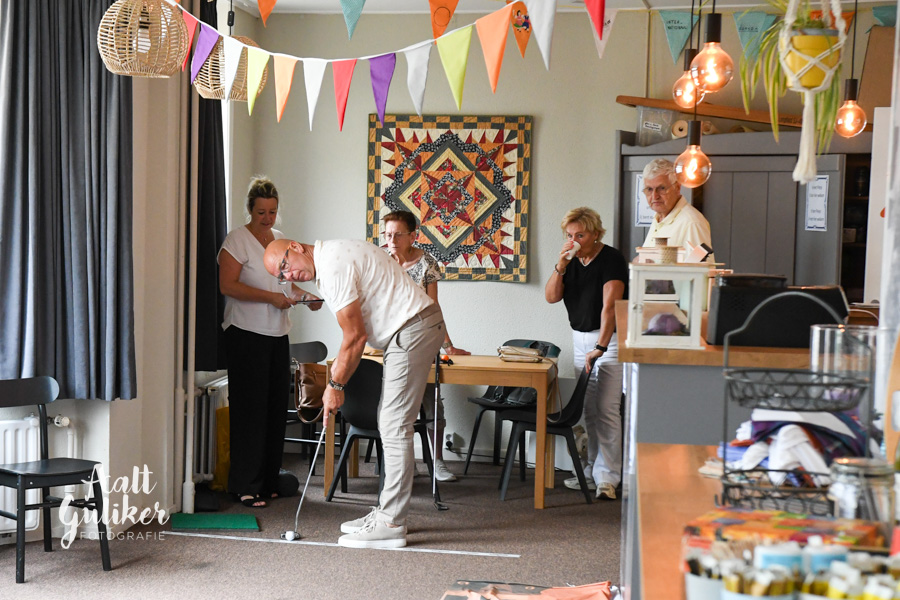 Namens de organisatie bedankte hij de sponsoren voor hun onmisbare steun. De hole van HAKOG werd door de deelnemers uitgeroepen tot de leukste van de dag, dankzij het originele en verrassende ontwerp. Team Autowas Bon sloot af met een pluim voor de organisatie: “Het was erg goed georganiseerd. Rotary – perfect gedaan. En hele leuke holes.” De opbrengst van het toernooi gaat deze editie naar het Odensehuis Nijkerk, een burgerinitiatief van, voor en door mensen met en zonder haperend brein. Daarover later meer. Foto’s Aalt Guliker en Kees van den Heuvel