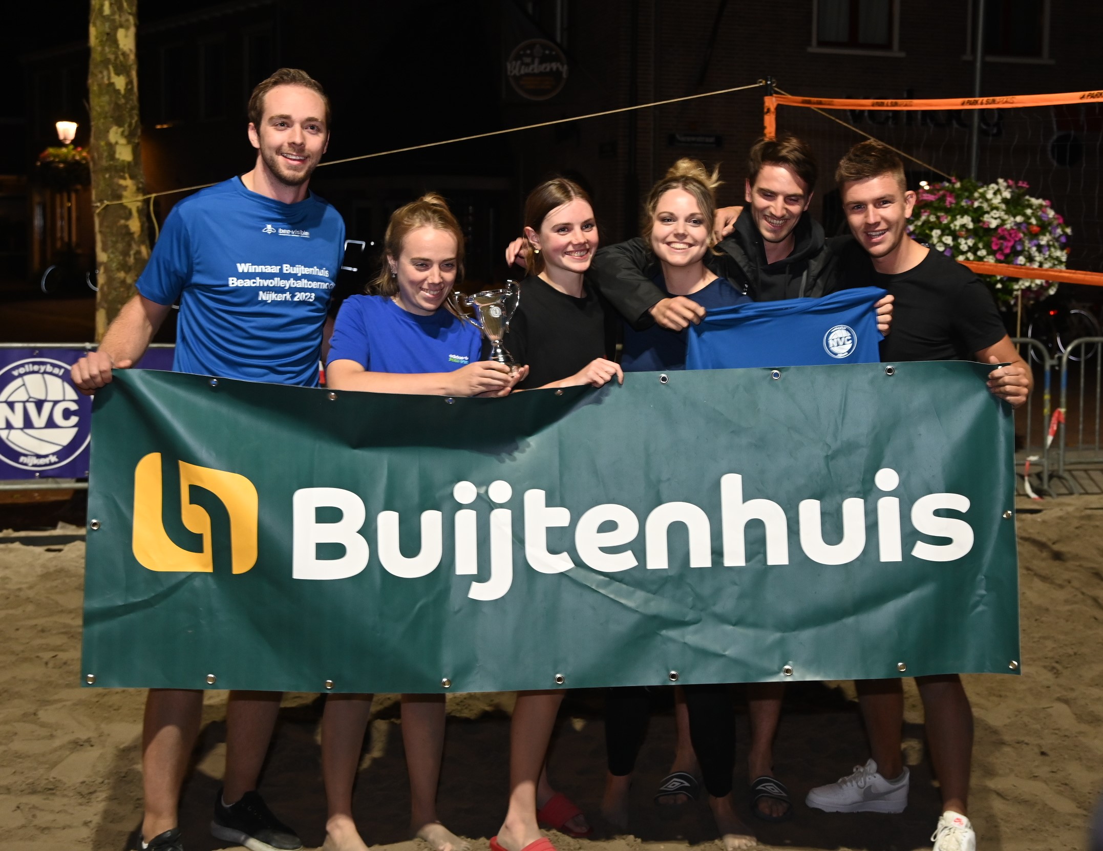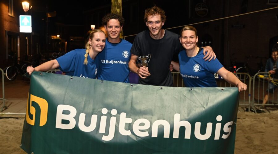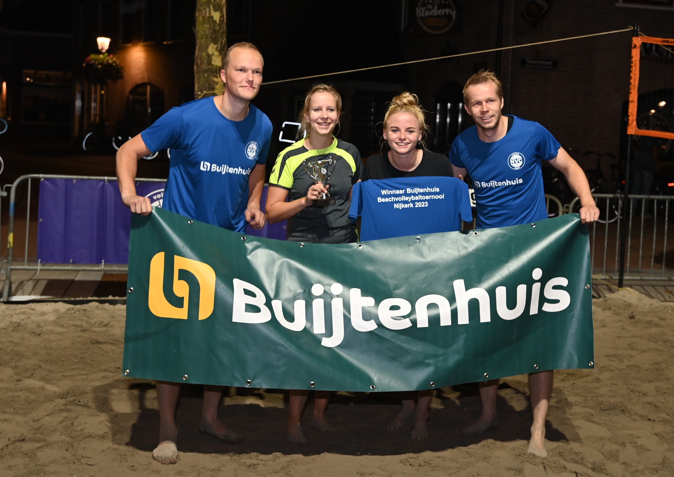 Editie 2023 van het Buijtenhuis beachvolleybaltoernooi op het Plein in Nijkerk is woensdagavond 16 augustus gewonnen door team LUST in de poule Gevorderden. Het won in de finale met 9-7 in de derde set van Ruben Pauls Bootcampklasje. Beachvolleybal Amersfoort pakte het brons. Bij de beginners eindigden de twee teams van Albert Heijn op een derde en tweede plek. Nummer 1 bij de beginnerspoule werd Kiss my Ace. Bij de semi-gevorderden werd het team van Van der Horst Montage derde. Het zilver in deze poule ging naar de Kroontjes. Nummer 1 bij de semi-gevorderden werd Nader te Bepalen. Foto Kees van den Heuvel