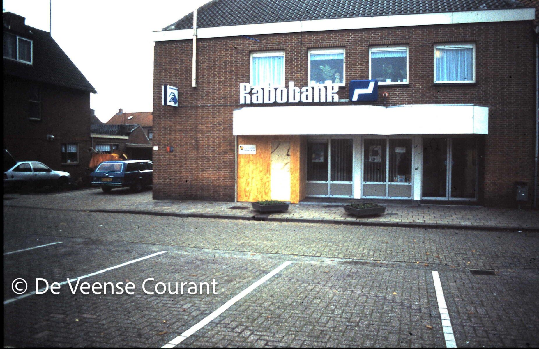 Het kantoor groeide mee met de tijd. De uitbreiding van het personeel van twee naar vijf vaste medewerkers (Bep Bouw, Joke Dobbenberg, Cisca Fiegen, Evelien van Bloemendaal en Corine van Muiswinkel) laat zien dat de bank floreerde en een steeds belangrijkere rol speelde in een groeiend Nijkerkerveen. De bank was echt ‘van’ het dorp, met lokale gezichten achter de balie. In 1980 werd er een ”echte” kluis gebouwd en werd het verouderde interieur enigszins aangepast. De verbouwing en uitbreiding in 1987, met als hoogtepunt het plaatsen van een kogelvrije balie en een totaal vernieuwd interieur, symboliseert de overgang van een simpele dorpsbank naar een serieuze, moderne financiële instelling. Een leuke anekdote: Terwijl het personeel in een noodgebouw op het plein werkte, heerste er even grote spanning: de tijdelijke noodhuisvesting stond op de nominatie voor een dreigende overval. Geruime tijd hield de politie de wacht vanuit de bovenwoning en de van Rootselaarschool, maar gelukkig is het nooit tot een overval gekomen. De politie die de wacht hield, toont aan hoe serieus de bankzaken (en het potentiële gevaar) in het dorp werden genomen. Het is een prachtig voorbeeld van hoe de landelijke criminaliteit ook het vredige Nijkerkerveen bereikte, maar door waakzaamheid werd afgewend. In 1992 werd de eerste geldautomaat van Nijkerkerveen officieel in gebruik genomen. Geldautomaten werden destijds gezien als een veilige en moderne service voor de dorpskern, zonder zware beveiligingsmaatregelen. De plofkraak was toen een nog onbekend fenomeen in Nederland.