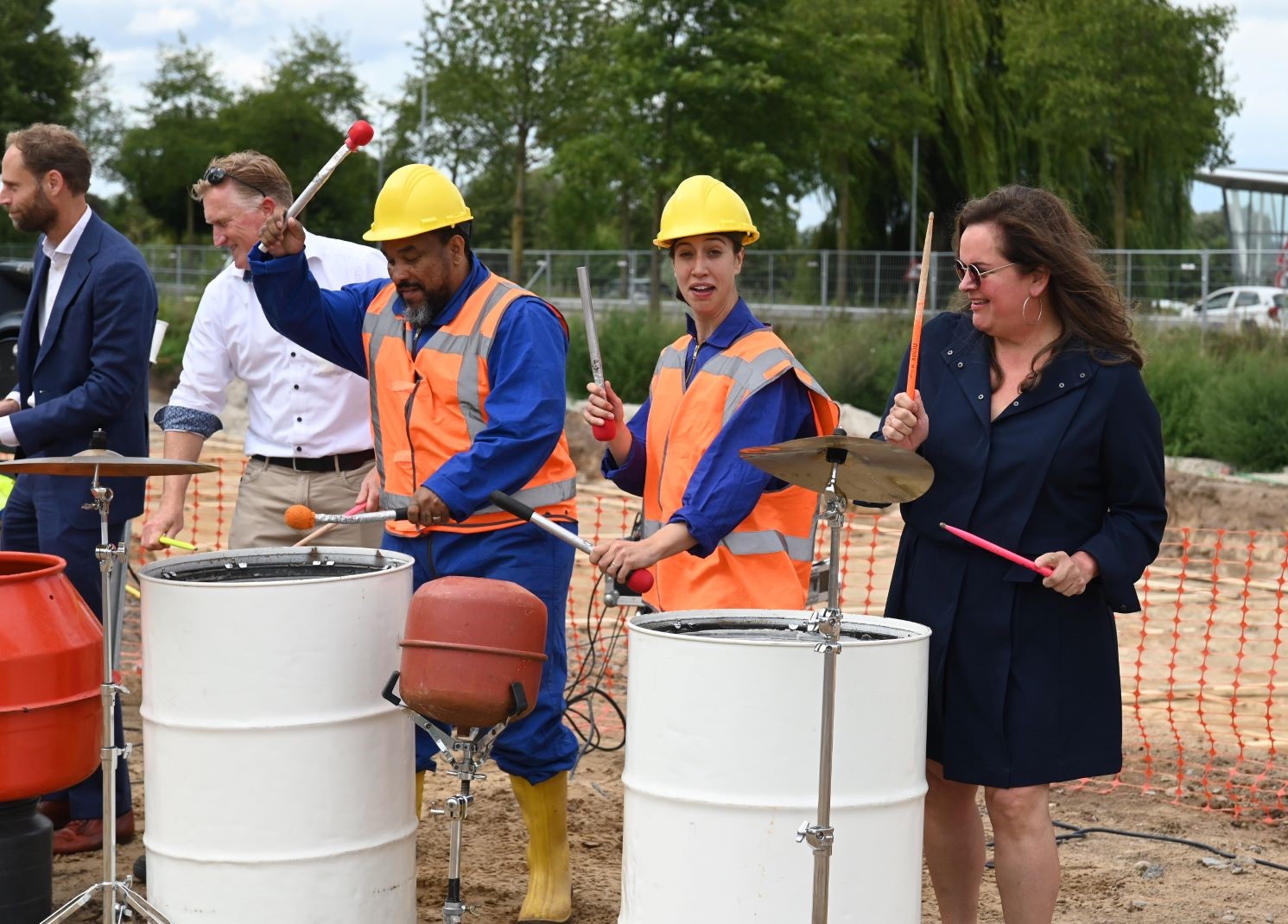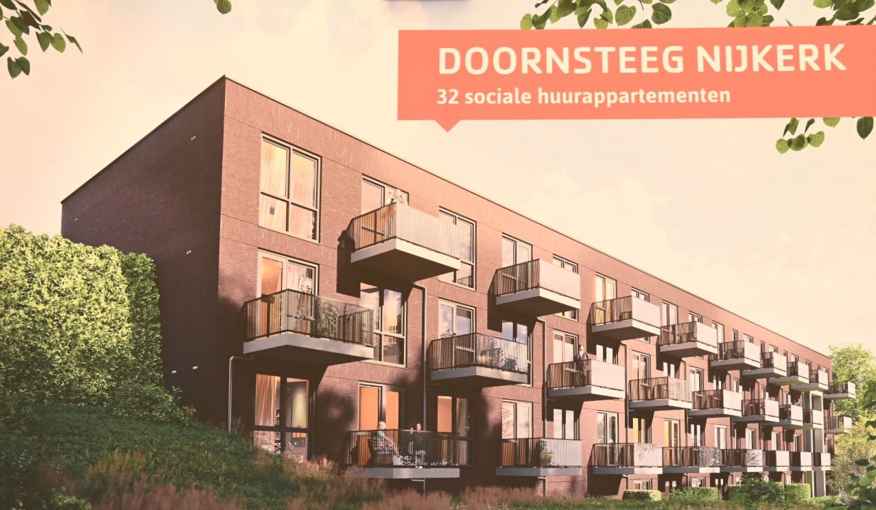 Donderdag 4 september heeft Heijmans Huizen, samen met de gemeente Nijkerk en Woningstichting Nijkerk de start gaan gevierd van de realisatie in Doornsteeg fase 3. Het eerste bouwproject is een appartementengebouw met 32 sociale huurappartementen voor Woningstichting Nijkerk. Al trommelend werd de ceremonie aangevangen, waarbij Erik Vos (Heijmans), Michiel van Baarsen (Woningstichting Nijkerk) en wethouder Esther Heutink plaatsnamen achter de trommels. Daarna was het tijd voor drie toespraken. Heutink hoopte in Doornsteeg voor alle doelgroepen te gaan bouwen, al gaf ze ook toe dat de woningbehoefte groter is dan voorheen. Verder maakte Erik Vos, wiens ouders tevens aanwezig waren, bekend dat de koopwoningen vanaf 10 september in de verkoop gaan. Vervolgens werd symbolisch de eerste paal geslagen van het appartementengebouw. In het westen van Nijkerk worden tot 2032 ongeveer 650 woningen gerealiseerd. Daarmee levert dit plan een flinke bijdrage in de oplossing voor het woningtekort in de gemeente Nijkerk. 32 sociale huurappartementen als verlengde van de geluidswal verschijnen als eerste in de nieuwe wijk.