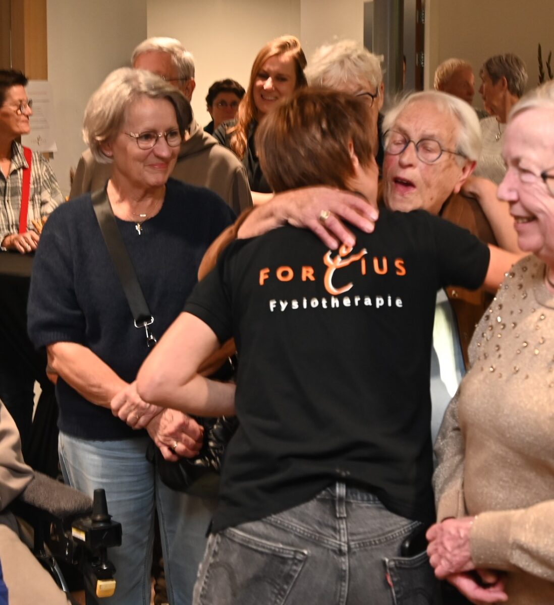 Met het doorknippen van een gouden lint is vrijdagmiddag 7 november de nieuwe eerste verdieping feestelijk geopend van Fortius Fysiotherapie. De opening werd verricht door directeur Jeanette van den Berg en Janny Rakhorst, de patient die al 28 jaar en daarmee het langst bij Fortius onder behandeling is. Ook andere patienten die al meer dan 25 jaar onder behandeling zijn ontvingen een attentie. Fortius Fysiotherapie biedt vanaf nu fysiotherapie, manuele therapie, sportfysiotherapie, oedeemtherapie, psychosomatische fysiotherapie, oncologische fysiotherapie, dry needling, medical taping en Lokomattraining. Daarnaast kunnen mensen er terecht voor een divers sportaanbod, waaronder FysioFit, LadyFit, SeniorFit, Yvlo-ZwangerFit®, Pilates, Bedrijfsfitness en SportFit. Met de komst van de extra ruimte breidt het aanbod van verschillende zorgdisciplines binnen het centrum uit. Naast fysiotherapie zijn bij Fortius de volgende zorgdisciplines gevestigd: huisartsen, osteopaat, diëtist, podotherapeut, Meander bloedprikken, (kinder)pyscholoog, keuringsarts, body stress release therapeut, Brein in Bloei en Amaris thuiszorg. Middels een open dag kon de uitbreiding worden bezichtigd. Foto Kees van den Heuvel