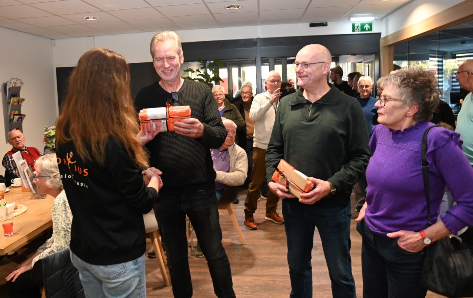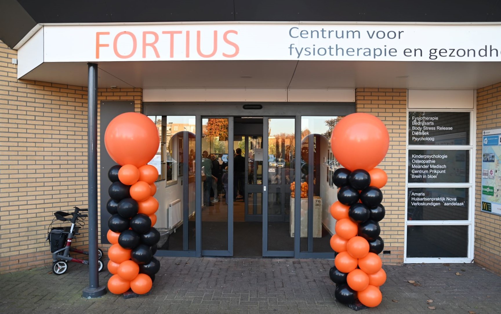 Met het doorknippen van een gouden lint is vrijdagmiddag 7 november de nieuwe eerste verdieping feestelijk geopend van Fortius Fysiotherapie. De opening werd verricht door directeur Jeanette van den Berg en Janny Rakhorst, de patient die al 28 jaar en daarmee het langst bij Fortius onder behandeling is. Ook andere patienten die al meer dan 25 jaar onder behandeling zijn ontvingen een attentie. Fortius Fysiotherapie biedt vanaf nu fysiotherapie, manuele therapie, sportfysiotherapie, oedeemtherapie, psychosomatische fysiotherapie, oncologische fysiotherapie, dry needling, medical taping en Lokomattraining. Daarnaast kunnen mensen er terecht voor een divers sportaanbod, waaronder FysioFit, LadyFit, SeniorFit, Yvlo-ZwangerFit®, Pilates, Bedrijfsfitness en SportFit. Met de komst van de extra ruimte breidt het aanbod van verschillende zorgdisciplines binnen het centrum uit. Naast fysiotherapie zijn bij Fortius de volgende zorgdisciplines gevestigd: huisartsen, osteopaat, diëtist, podotherapeut, Meander bloedprikken, (kinder)pyscholoog, keuringsarts, body stress release therapeut, Brein in Bloei en Amaris thuiszorg. Middels een open dag kon de uitbreiding worden bezichtigd. Foto Kees van den Heuvel