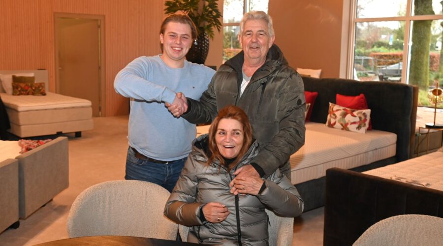 Klaas Mostert bezocht maandag 1 december met zijn vrouw Grietje de beddenwinkel Uniek Slapen aan de Breede Beek in Nijkerk. Naar zijn zin wilde het bedrijf te weinig korting geven. En toen zag hij buiten journalist Kees van den Heuvel met zijn camera langslopen in de regen. Als er een foto zou worden gemaakt van de beddenwinkel, zou het met een koop wel snor zitten. En zo geschiedde. Klaas slaapt straks op een heerlijk nieuw matras. Foto Kees van den Heuvel
