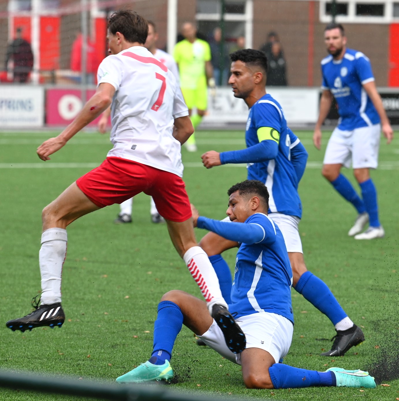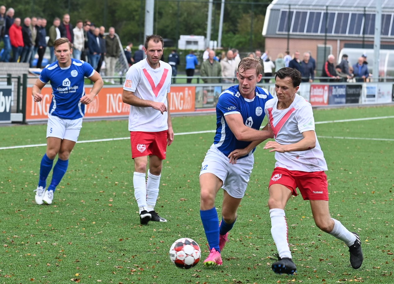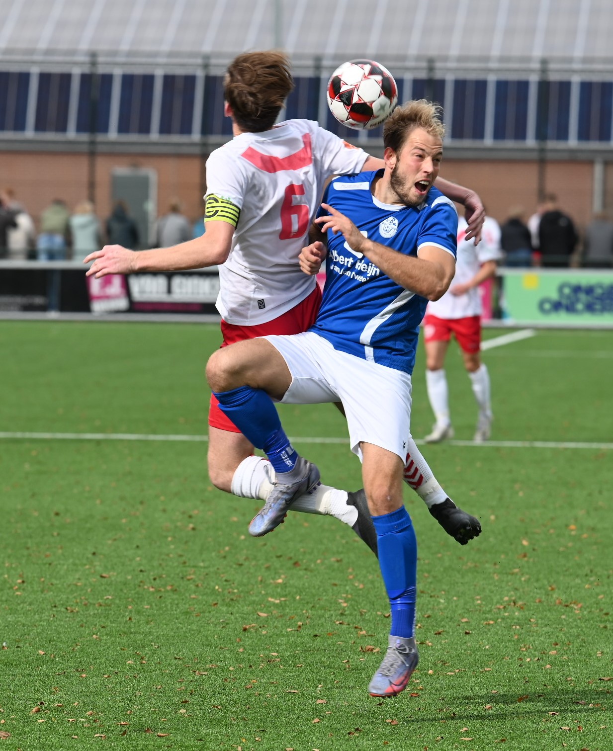 Veensche Boys heeft in haar eerste competitiewedstrijd gelijk gespeeld tegen de Valleivogels. In Scherpenzeel werd het 2-2. De doelpunten werden namens de Blauwe Helden gemaakt door Julian Buitenhuis en Corné Parol. In de eerste helft was Veensche Boys onherkenbaar. Het leek wel of de ploeg van trainer Erik Assink een beetje was bevangen door plankenkoorts. Het manco zat hem vooral achterin dat de voorbode was voor de eerste twee goals van de Valleivogels. Vanuit dode spelmomenten scoorden Alex van Eem en Mathijs van Dusschoten kopte de tweede erin. Tot die tijd was er slechts één kans van Rody Buitenhuis die tegen de keeper van de tegenstander aanschoot. Na een half uur spelen werd Veensche Boys wakker. Corné Parol speelde de bal voor de goal en het was Julian Buitenhuis die met zijn schoenen de bal in de nok joeg (2-1). Na rust was een heel ander Veensche Boys te zien. De ploeg uit Nijkerkerveen werkte hard om de gelijkmaker op het scorebord te zetten. En die kwam er ook. Julian Buitenhuis zette goed voor waarna Corné Parol scoorde. Daarna ging de Valleivogels op de pijnbank. In het laatste kwartier volgde een bombardement op de goalie van de Valleivogels, maar de ploeg uit Scherpenzeel kon zich ternauwernood de aanvalsdriften van Veensche Boys pareren. De grootste kans was voor Levi Haringsma, die de bal in de goal kopte, die door de keeper bijzonder fraai uit het doelgebied werd gewerkt. Waar in elk geval geen gebrek aan was, waren gele kaarten. Rik Doppenberg kreeg er zelfs twee en die moest met rood van het veld vertrekken. Ondanks de tien man was Veensche Boys evenwel sterker dan de opponent uit Scherpenzeel. Foto en tekst Kees van den Heuvel