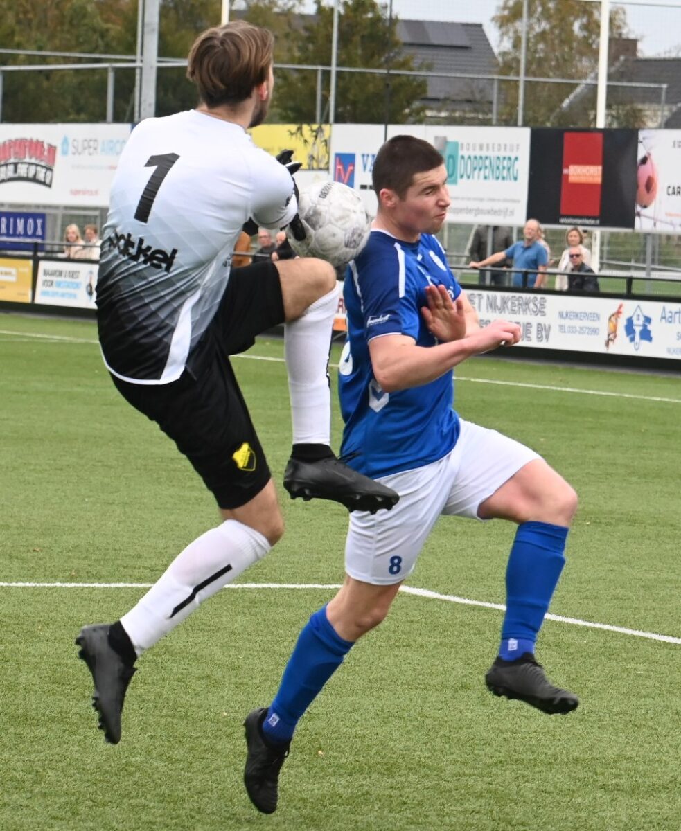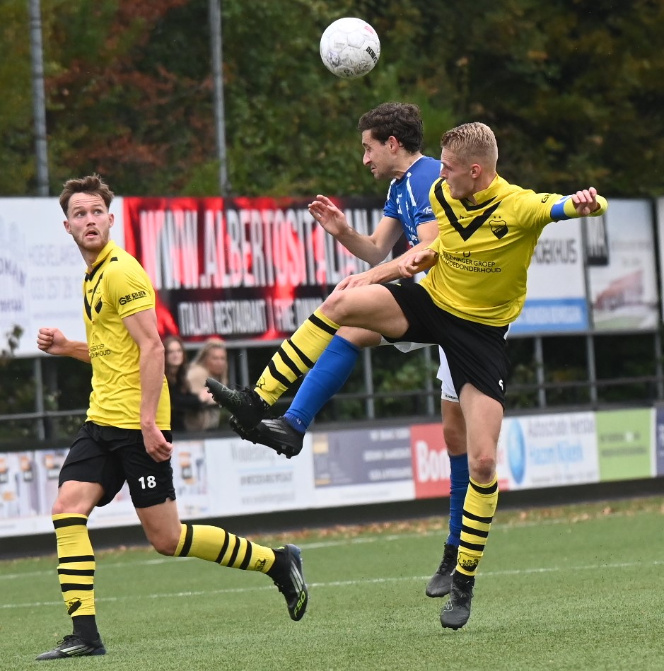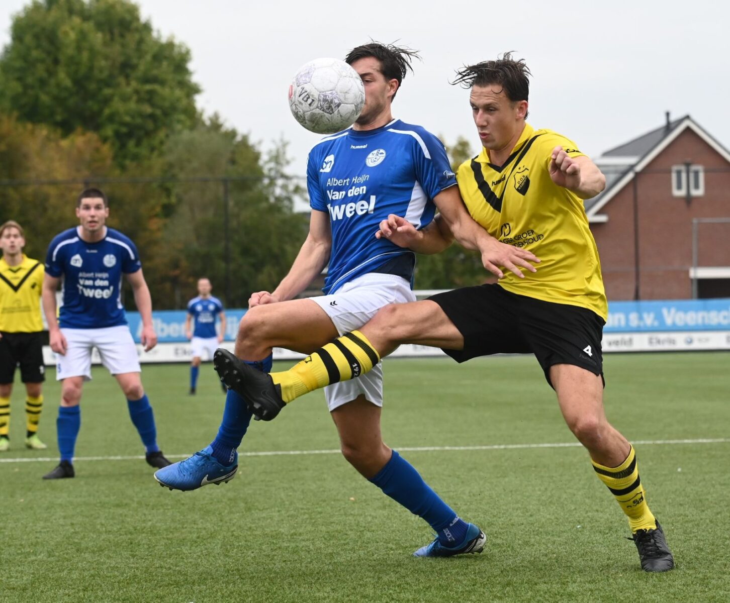 Veensche Boys is afgezakt naar een gedeeld laatste plek in de eerste klasse F na een nederlaag tegen DOS Kampen. Zaterdag 11 oktober werd het op het eigen sportcomplex in Nijkerkerveen 2-3. De verslagenheid was groot onder de staf. Een grote dreun. aldus hoofdtrainer Jeroen Peters. Hij was met de intentie in het veld gegaan om zo offensief mogelijk te spelen, maar dat kwam in de eerste helft moeilijk uit de verf. Er waren slechts twee kansen voor Veensche Boys, waarbij Tom van Donselaar het meest dichtbij een goal was. Een prima voorzet van Michel Goossensen miste hij op een haar na. DOS Kampen deed het minstens zo inspiratieloos, maar scoorde wel, twee minuten voor rust via een doelpunt Jayden Rama. Na de thee was er een kort moment van euforische proporties. Veensche Boys scoorde in zowel de eerste als tweede minuut van de tweede helft middels respectievelijk Corné Parol en Michel Goossensen. Maar door een minder sterk optreden achterin bij Veensche Boys wist DOS Kampen al snel weer op voorsprong te komen via Donny Mulder in de zeventigste minuut en Twan Knul, zeven minuten later. Veensche Boys had nog wel diverse kansen om langszij te komen, maar Laurens de Korte en Jurre van den Brom misten hun inzet. Eindstand 2-3. Donderdag speelt Veensche Boys een oefenwedstrijd tegen tweedeklasser FC Horst. Foto en tekst Kees van den Heuvel