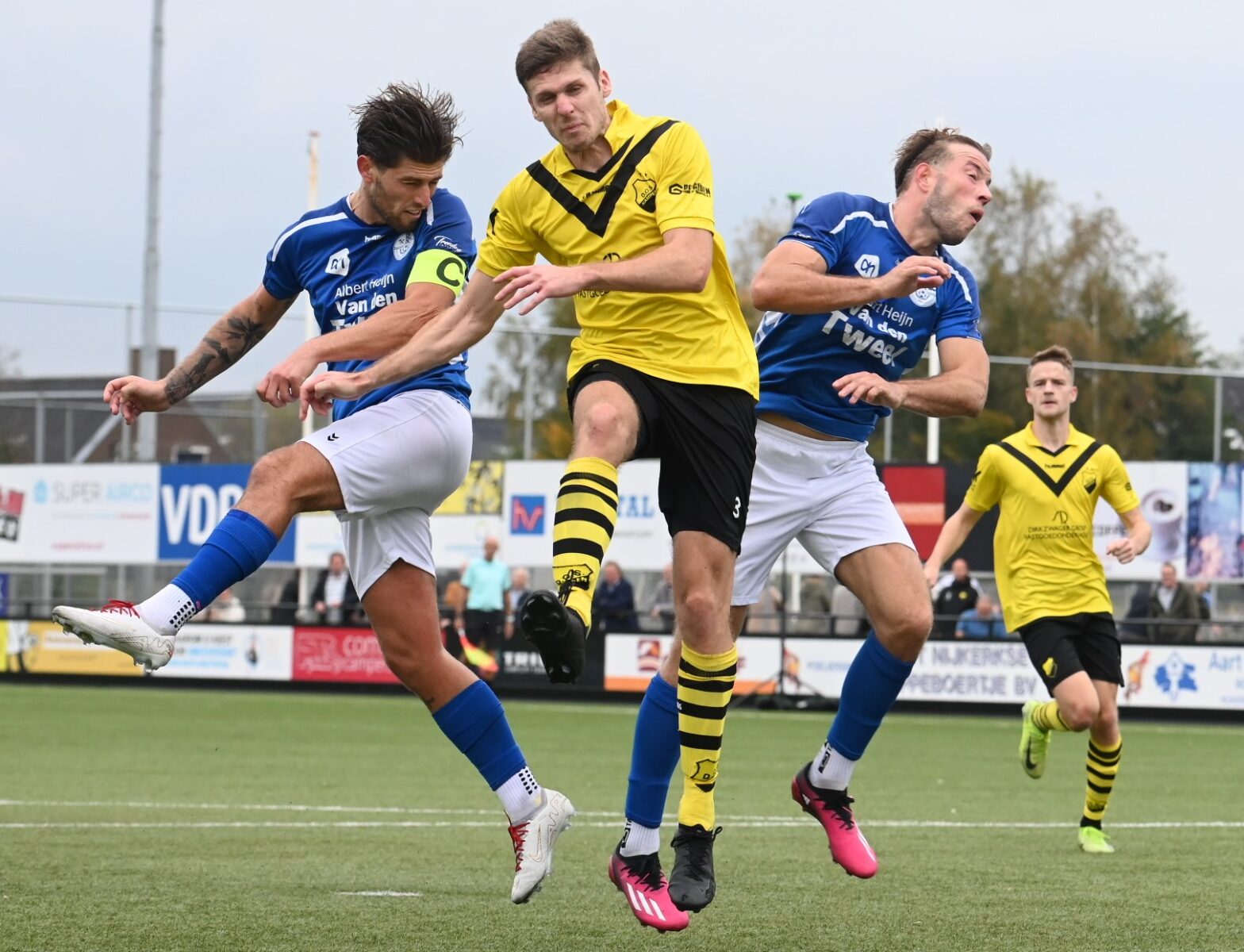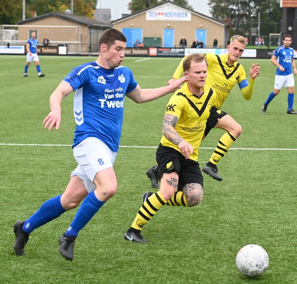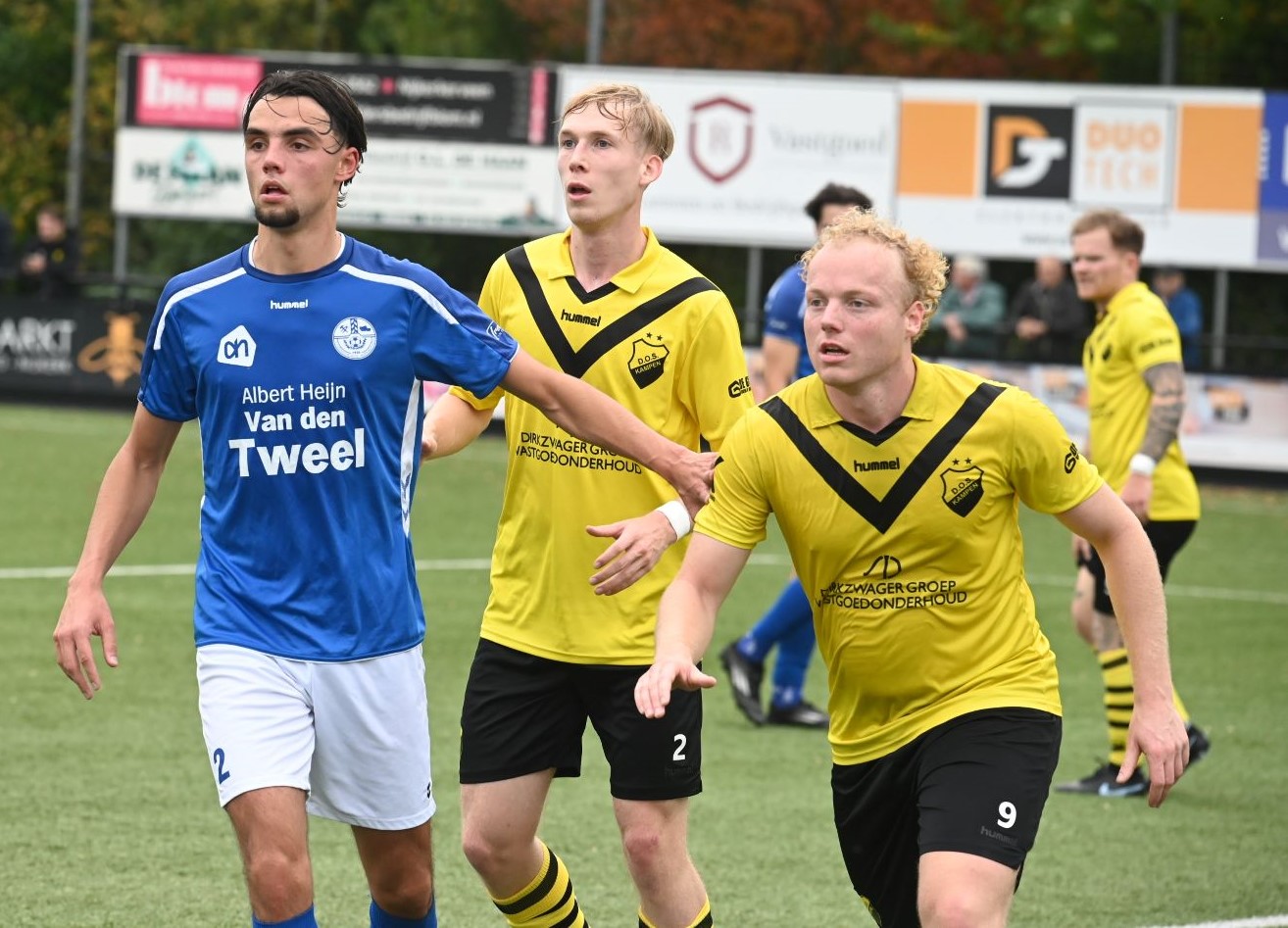 Veensche Boys is afgezakt naar een gedeeld laatste plek in de eerste klasse F na een nederlaag tegen DOS Kampen. Zaterdag 11 oktober werd het op het eigen sportcomplex in Nijkerkerveen 2-3. De verslagenheid was groot onder de staf. Een grote dreun. aldus hoofdtrainer Jeroen Peters. Hij was met de intentie in het veld gegaan om zo offensief mogelijk te spelen, maar dat kwam in de eerste helft moeilijk uit de verf. Er waren slechts twee kansen voor Veensche Boys, waarbij Tom van Donselaar het meest dichtbij een goal was. Een prima voorzet van Michel Goossensen miste hij op een haar na. DOS Kampen deed het minstens zo inspiratieloos, maar scoorde wel, twee minuten voor rust via een doelpunt Jayden Rama. Na de thee was er een kort moment van euforische proporties. Veensche Boys scoorde in zowel de eerste als tweede minuut van de tweede helft middels respectievelijk Corné Parol en Michel Goossensen. Maar door een minder sterk optreden achterin bij Veensche Boys wist DOS Kampen al snel weer op voorsprong te komen via Donny Mulder in de zeventigste minuut en Twan Knul, zeven minuten later. Veensche Boys had nog wel diverse kansen om langszij te komen, maar Laurens de Korte en Jurre van den Brom misten hun inzet. Eindstand 2-3. Donderdag speelt Veensche Boys een oefenwedstrijd tegen tweedeklasser FC Horst. Foto en tekst Kees van den Heuvel