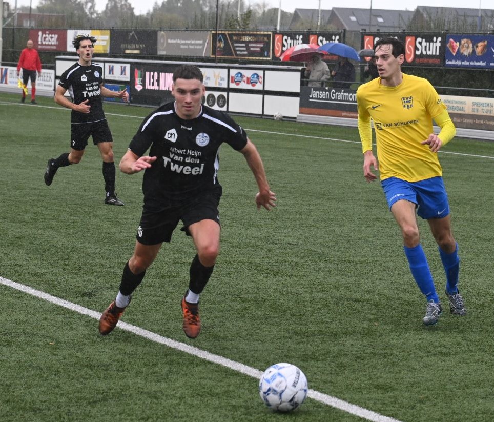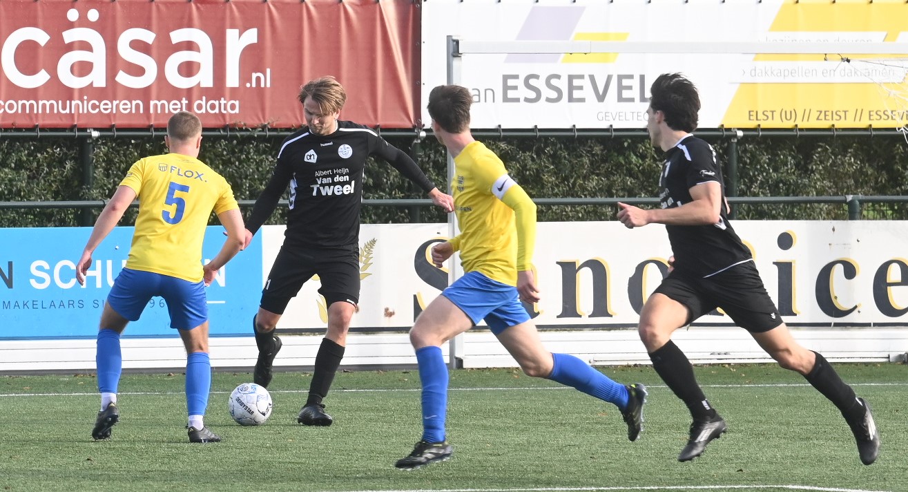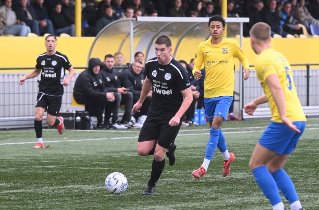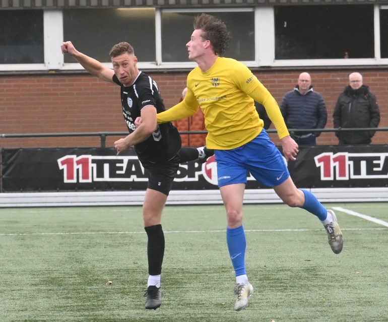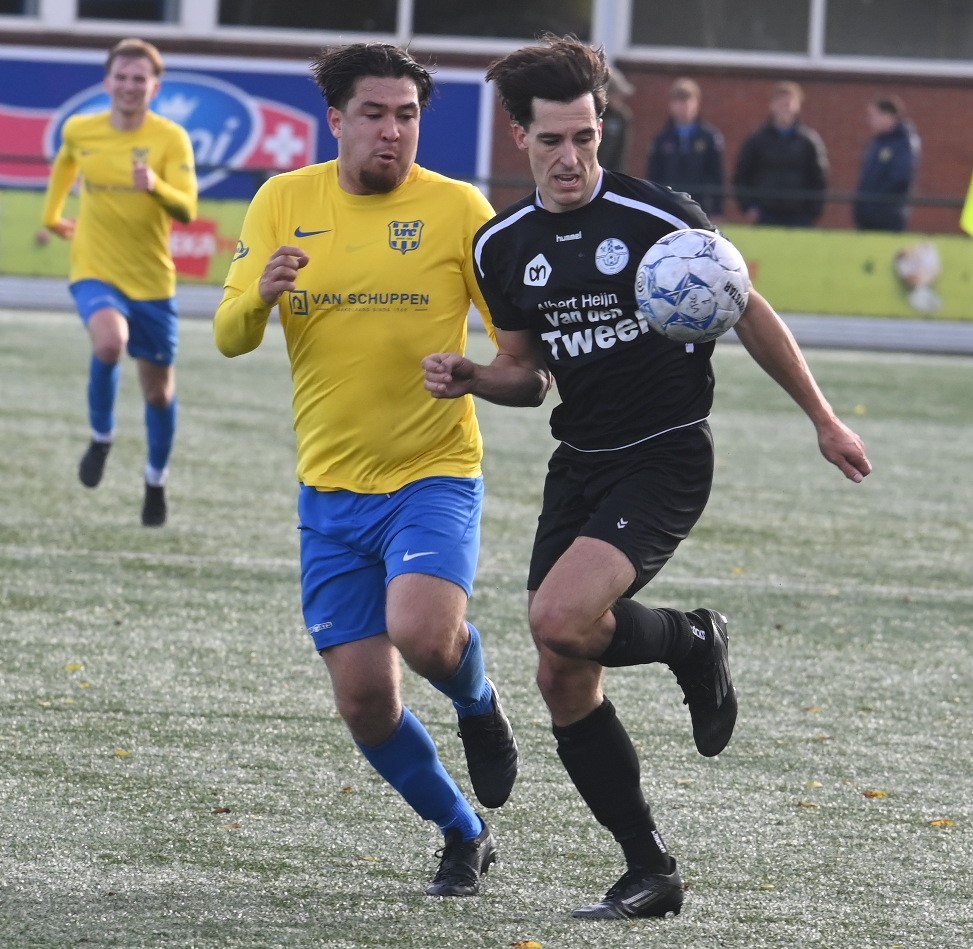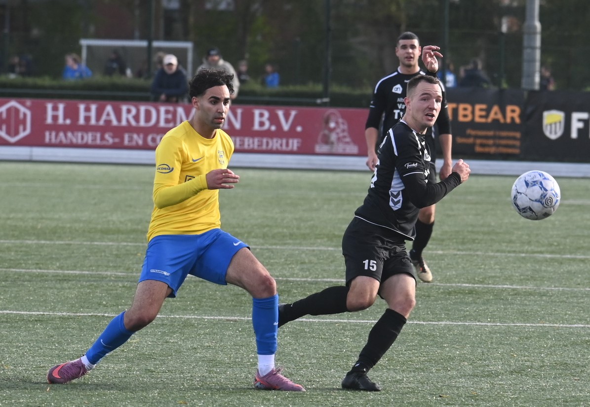 Het huilen staat Veensche Boys nader dan het lachen. Er is nog geen enkele competitiewedstrijd gewonnen en ook zaterdag 25 bleek VRC te sterk voor de hoofdmacht van trainer Jeroen Peters. Veensche Boys ging in Veenendaal met 2-1 ten onder. En dan was volledig terecht. Vooral in de eerste helft wist Veensche Boys er niets van te bakken. Met uitzondering van een aantal ballen hoog over werd geen enkele kans gecreëerd. Een onmachtig Veensche Boys moest het afleggen tegen een VRC dat ook niet in grootse vorm verkeerde. De Veenendalers scoorden echter wel. In de veertiende minuut dankzij Viggo Koeleman en op slag van rust via Paul Oostermeijer met een aanval door het midden. In de rust werd gepuzzeld om een offensiever Veensche Boys op de been te brengen. Rik Doppenberg, Corné Parol en Mark de Graaf werden ingebracht en dat deed de wedstrijd kantelen. Veensche Boys speelde weer bijna als vanouds en controleerde het spel. Tot doelpunten leidde dit echter nog niet. Pas in de achtste minuut van de blessuretijd wist Corné Parol in een melee van spelers de enige treffer namens Veensche Boys te maken. Foto Kees van den Heuvel