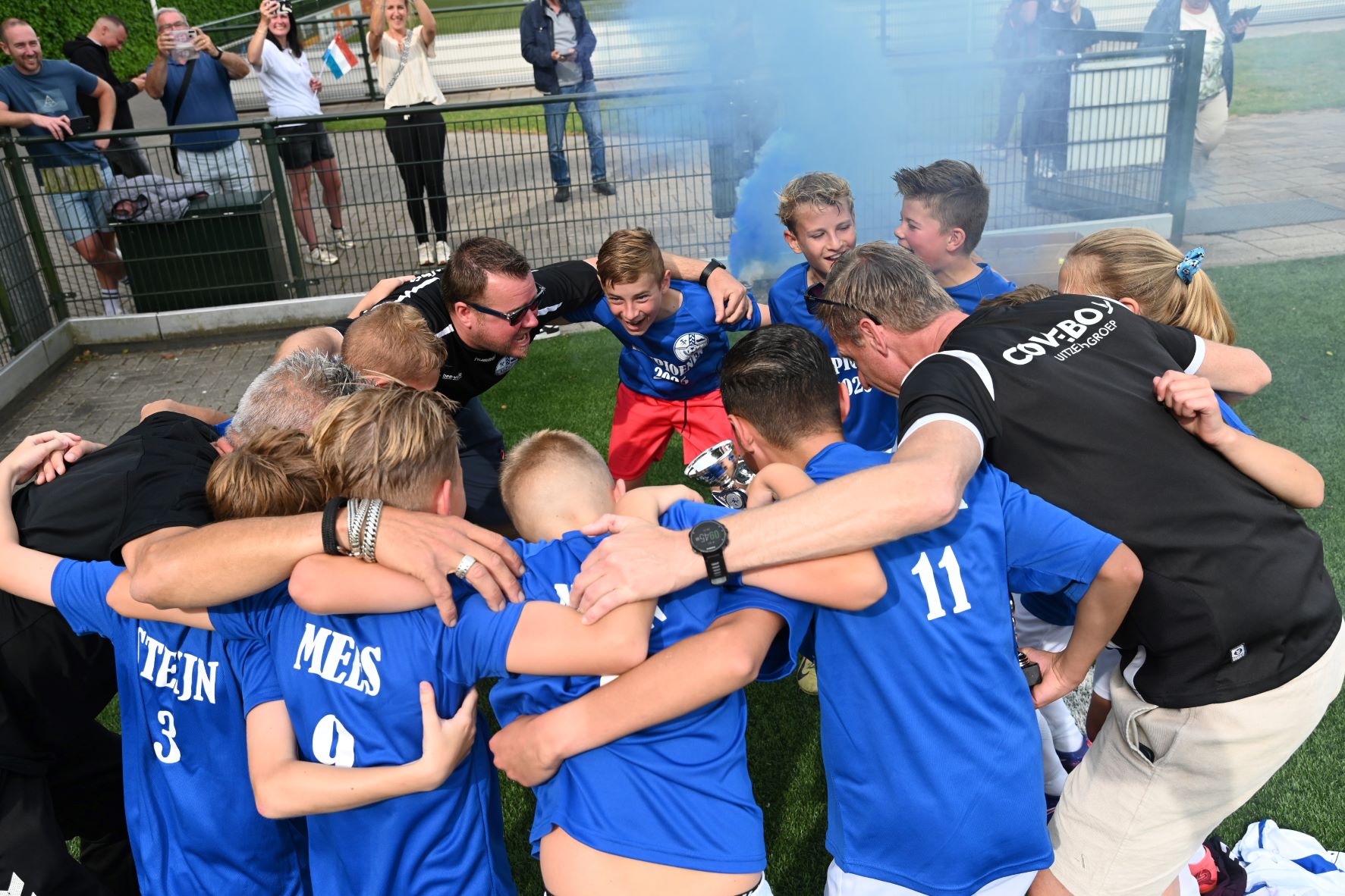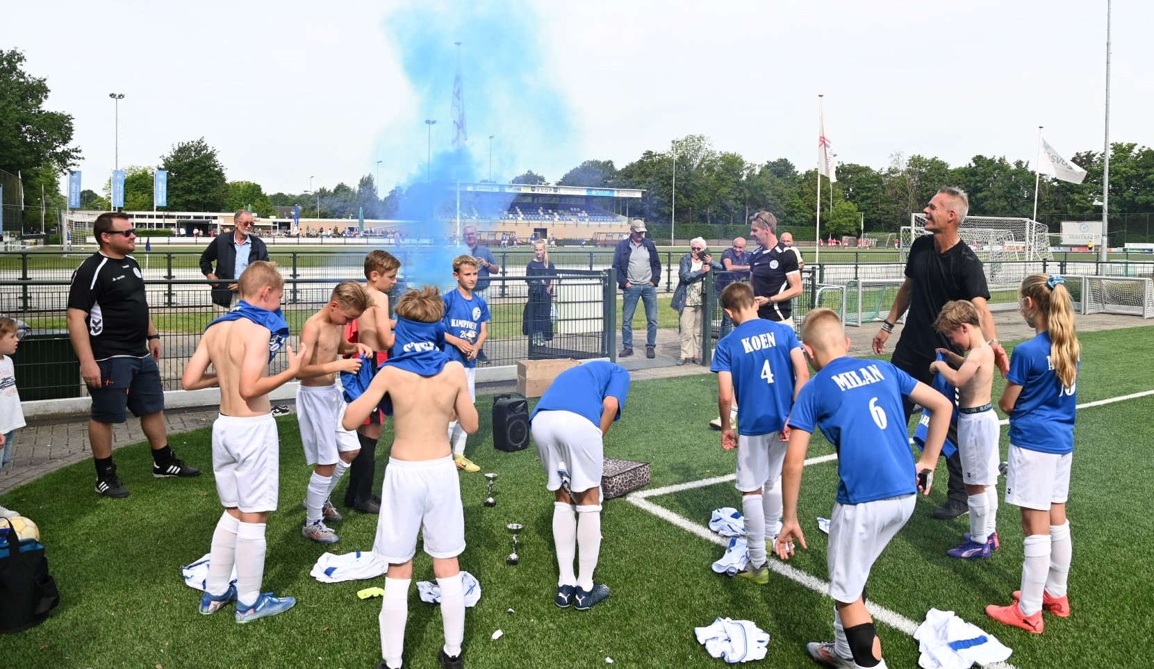 Het gemengde team van Veensche Boys Jo11-1 is zaterdag 31 mei in hun laatste competitiewedstrijd in Voorthuizen kampioen geworden. Tegen het plaatselijke VVOP werd het 4-9. Na de zege werden kampioensbekers en speciale shirts uitgereikt. Daarna volgde in Nijkerkerveen een rit op de kar dat vergezeld ging met veel vuurwerk. Foto Kees van den Heuvel