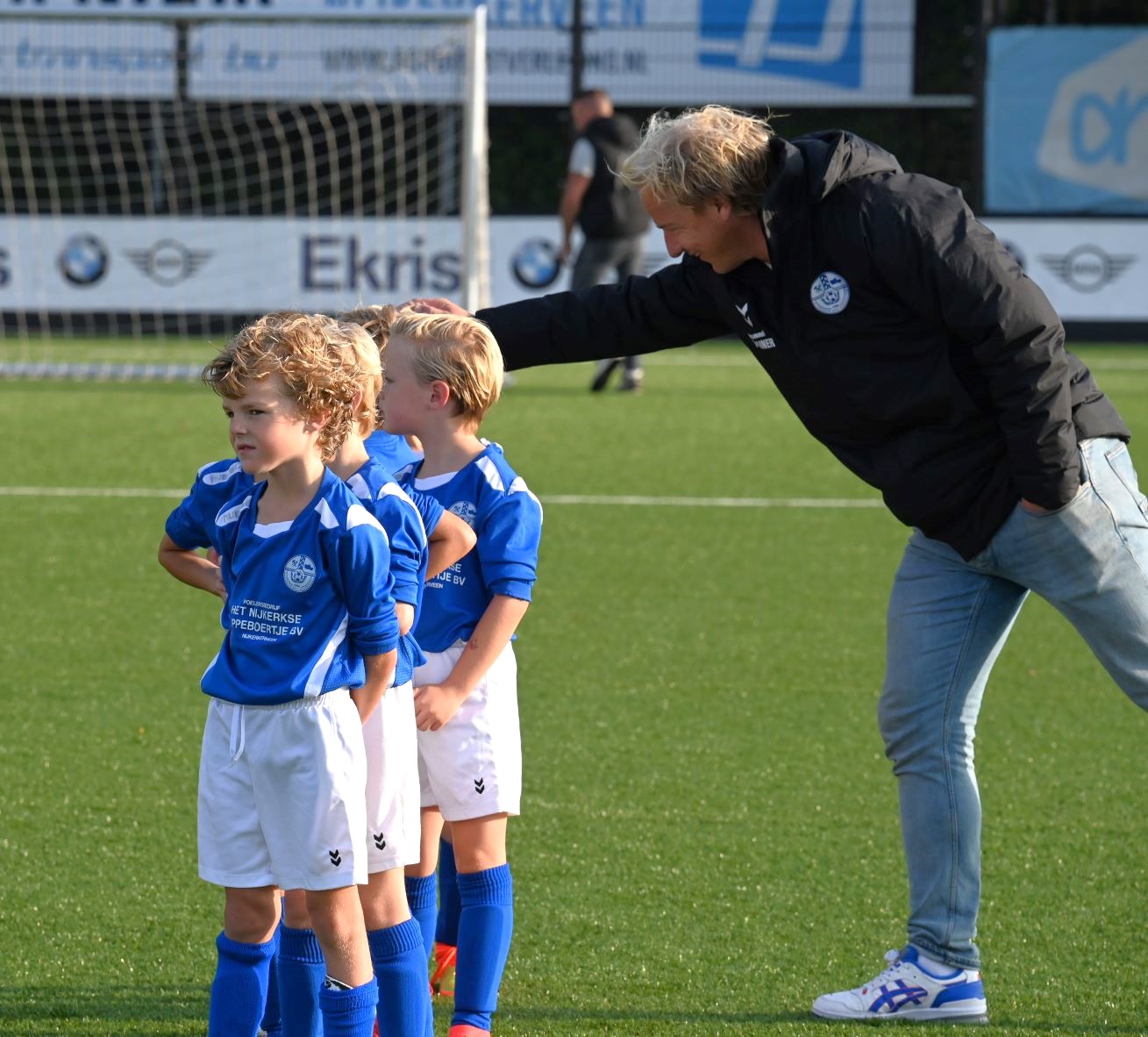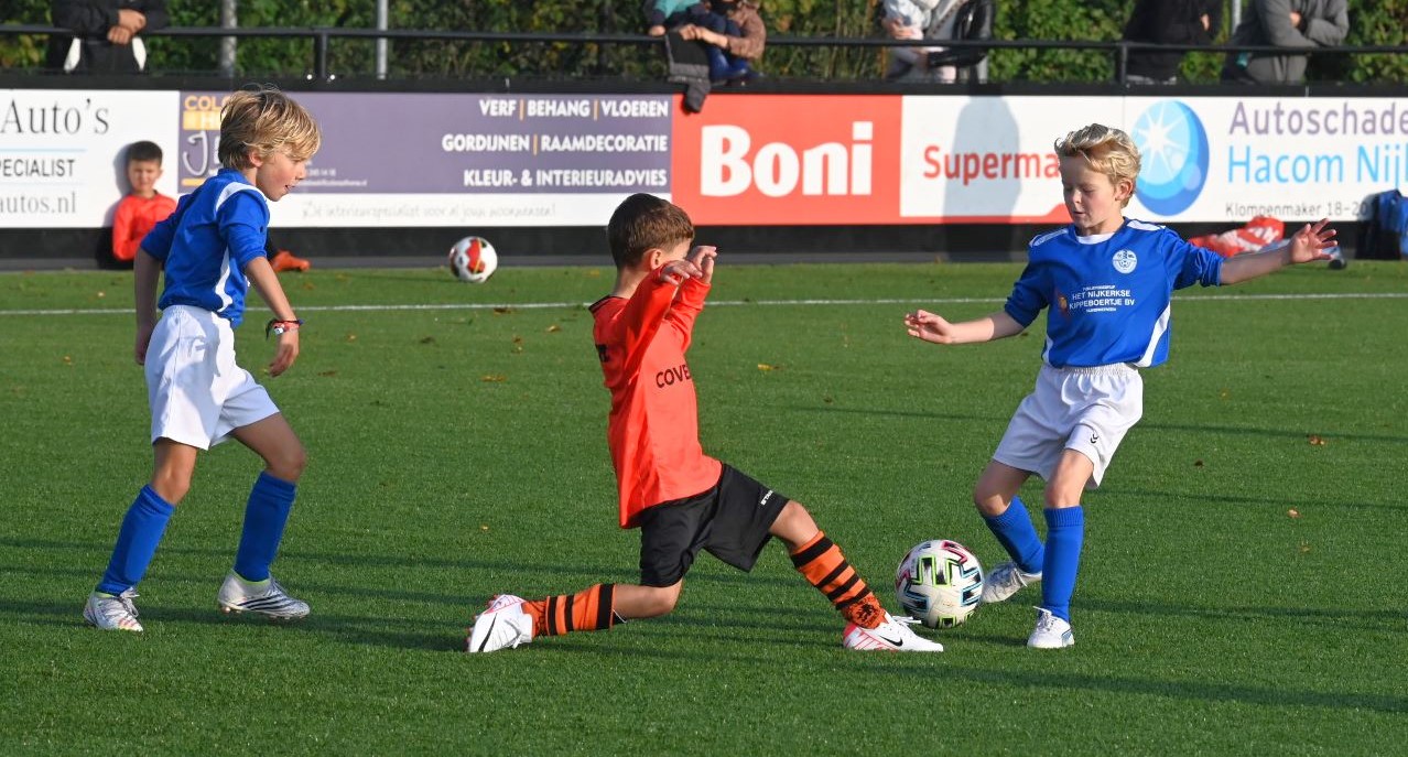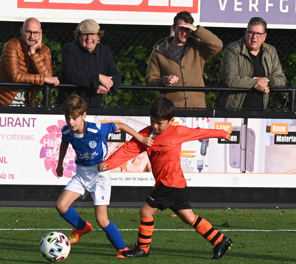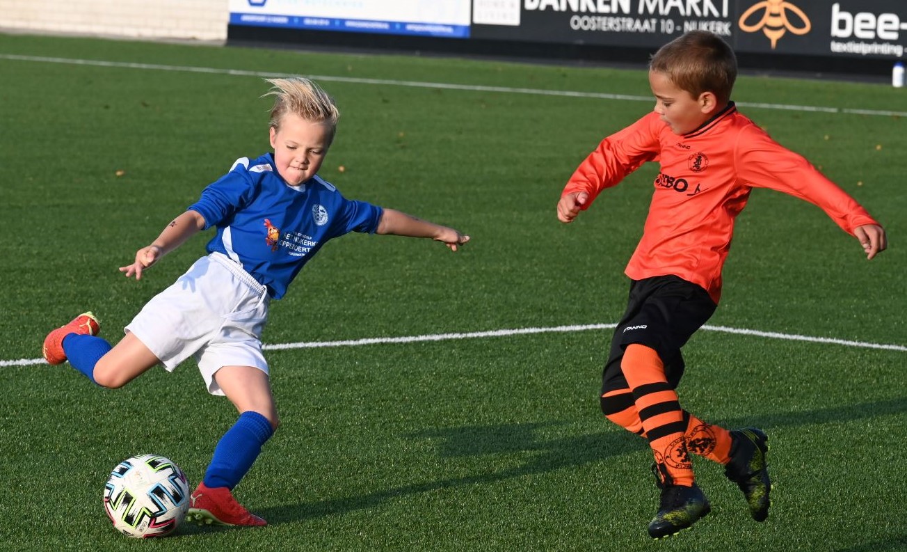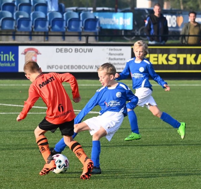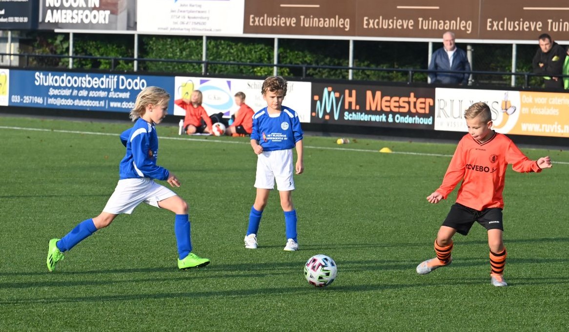 Dagenlang hadden de spelertjes van Veensche Boys Jo8-1 ernaar uitgekeken: het treffen tegen de opponenten van Sparta Nijkerk JO8-2, ofwel de derby der derby’s. Motivatiegesprekken of schwalbe-technieken waren niet nodig, want de jongens uit Nijkerkerveen gingen er vanaf de eerste minuut helemaal voor. Al snel liep de score op tot ongekende hoogte. Bij rust was het al 8-0. Na de thee was het Sparta Nijkerk dat meer pressievoetbal ging spelen, wat zelfs resulteerde in een doelpunt voor de Nijkerkers, maar al snel pakten de Blauwe Helden de draad weer op en stond een score van 12-1 op het wedstrijdformulier. Maar ach, alles is betrekkelijk, zelfs een winstpartij, want een paar meter verderop was eenzelfde derby gaande tussen Veensche Boys Jo9-1 en Sparta Nijkerk Jo9-3 en daar wonnen de Nijkerkers afgetekend met 0-6. Foto Kees van den Heuvel
