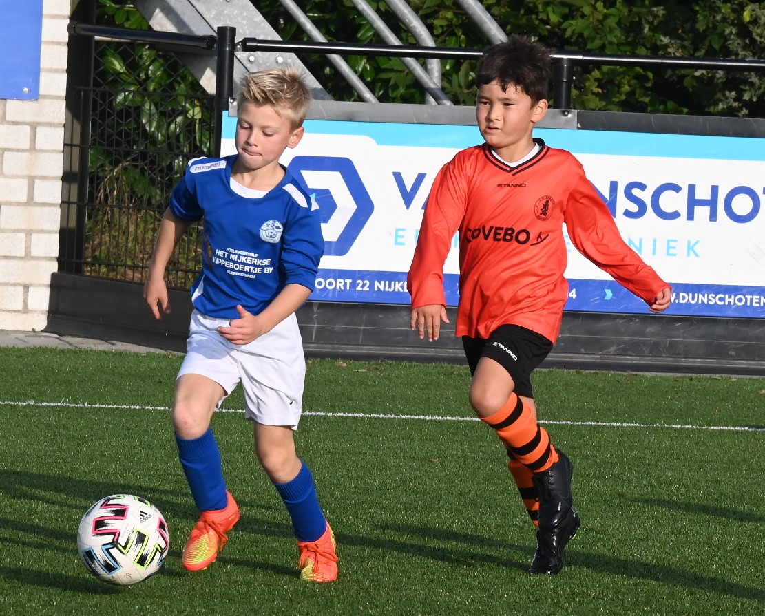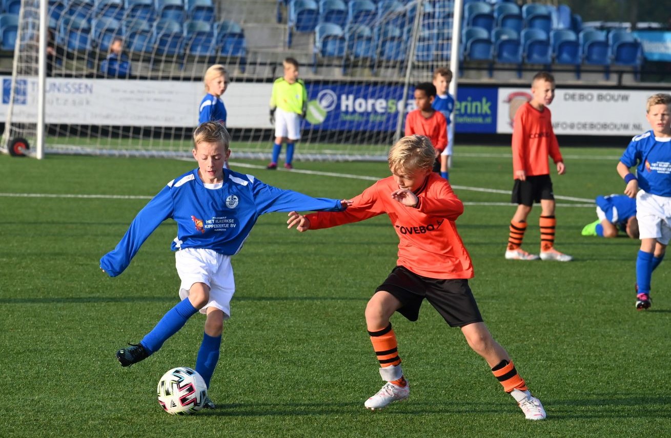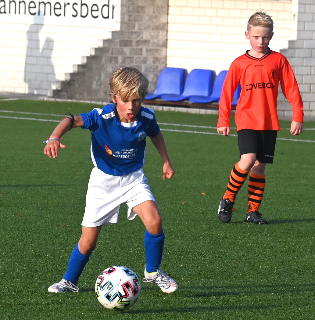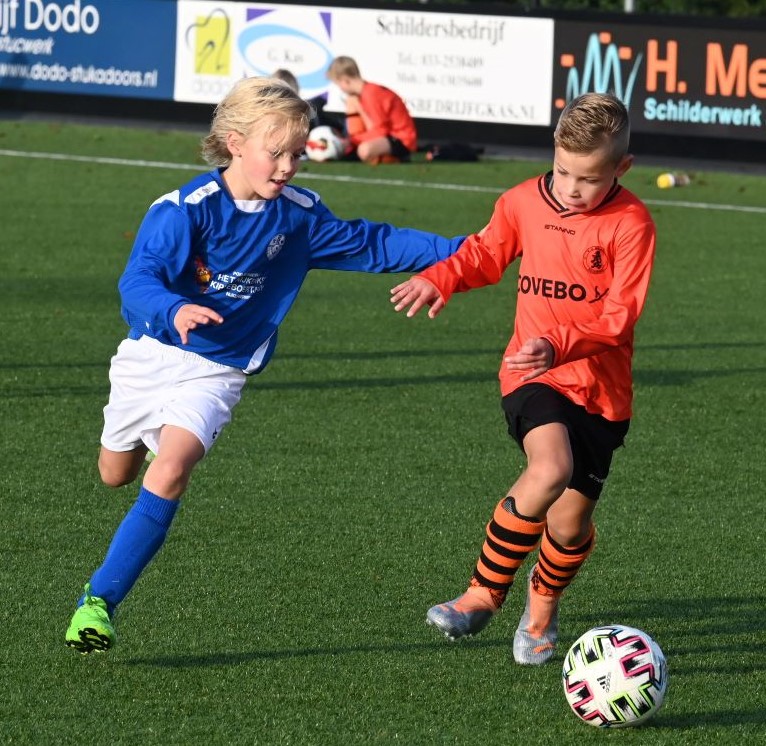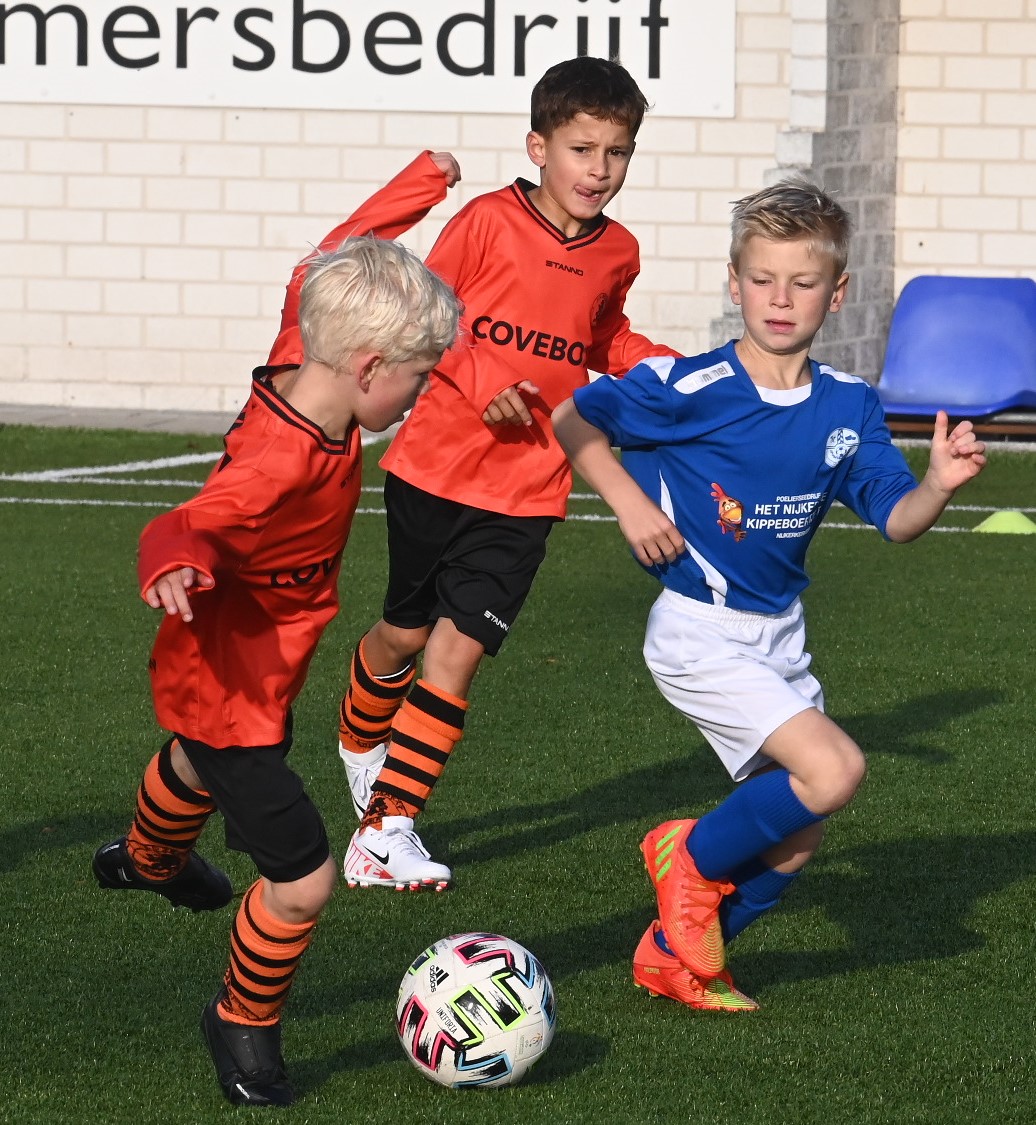 Dagenlang hadden de spelertjes van Veensche Boys Jo8-1 ernaar uitgekeken: het treffen tegen de opponenten van Sparta Nijkerk JO8-2, ofwel de derby der derby’s. Motivatiegesprekken of schwalbe-technieken waren niet nodig, want de jongens uit Nijkerkerveen gingen er vanaf de eerste minuut helemaal voor. Al snel liep de score op tot ongekende hoogte. Bij rust was het al 8-0. Na de thee was het Sparta Nijkerk dat meer pressievoetbal ging spelen, wat zelfs resulteerde in een doelpunt voor de Nijkerkers, maar al snel pakten de Blauwe Helden de draad weer op en stond een score van 12-1 op het wedstrijdformulier. Maar ach, alles is betrekkelijk, zelfs een winstpartij, want een paar meter verderop was eenzelfde derby gaande tussen Veensche Boys Jo9-1 en Sparta Nijkerk Jo9-3 en daar wonnen de Nijkerkers afgetekend met 0-6. Foto Kees van den Heuvel