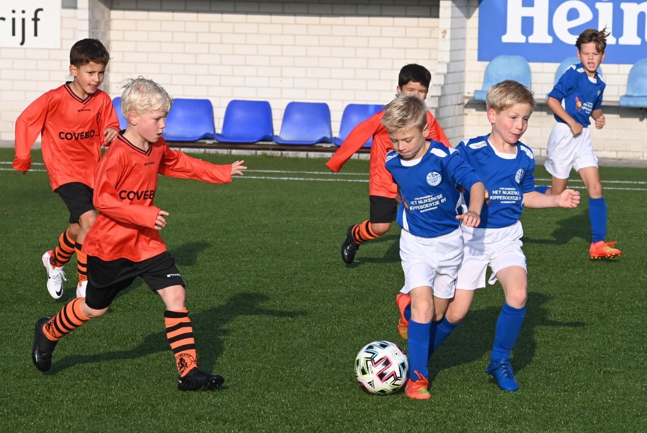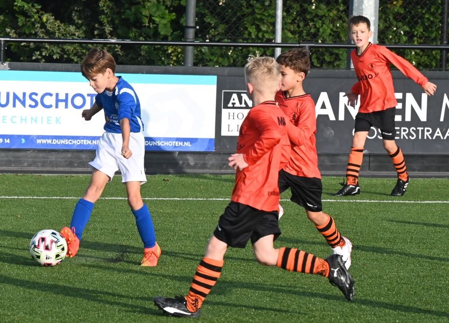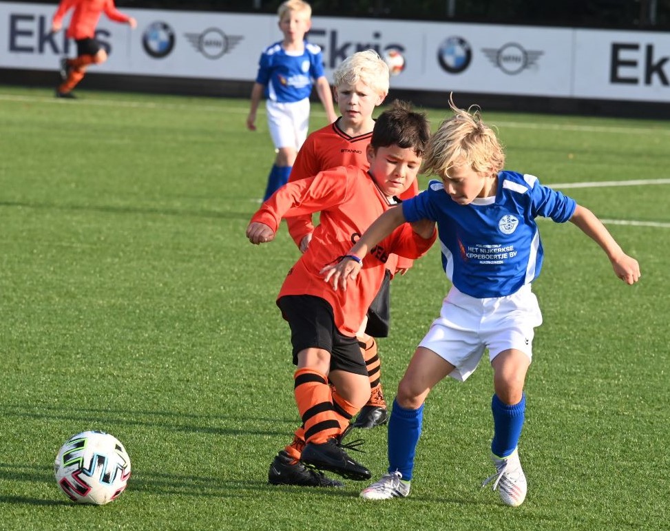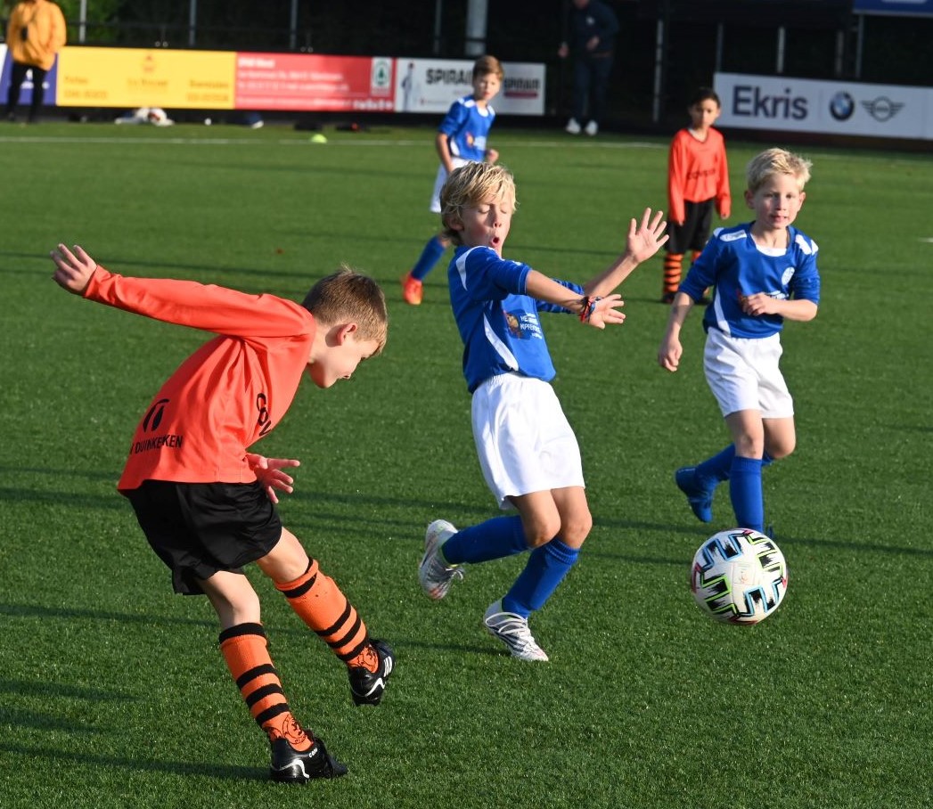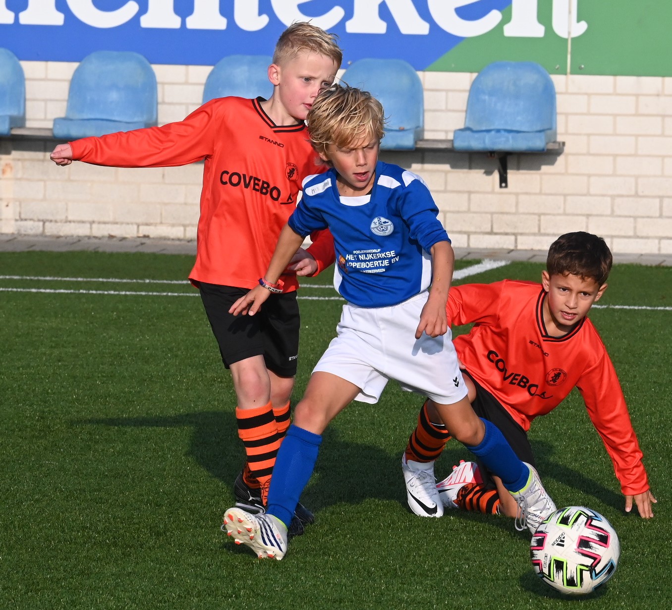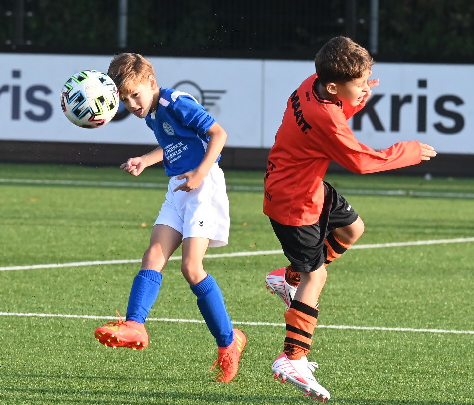 Dagenlang hadden de spelertjes van Veensche Boys Jo8-1 ernaar uitgekeken: het treffen tegen de opponenten van Sparta Nijkerk JO8-2, ofwel de derby der derby’s. Motivatiegesprekken of schwalbe-technieken waren niet nodig, want de jongens uit Nijkerkerveen gingen er vanaf de eerste minuut helemaal voor. Al snel liep de score op tot ongekende hoogte. Bij rust was het al 8-0. Na de thee was het Sparta Nijkerk dat meer pressievoetbal ging spelen, wat zelfs resulteerde in een doelpunt voor de Nijkerkers, maar al snel pakten de Blauwe Helden de draad weer op en stond een score van 12-1 op het wedstrijdformulier. Maar ach, alles is betrekkelijk, zelfs een winstpartij, want een paar meter verderop was eenzelfde derby gaande tussen Veensche Boys Jo9-1 en Sparta Nijkerk Jo9-3 en daar wonnen de Nijkerkers afgetekend met 0-6. Foto Kees van den Heuvel