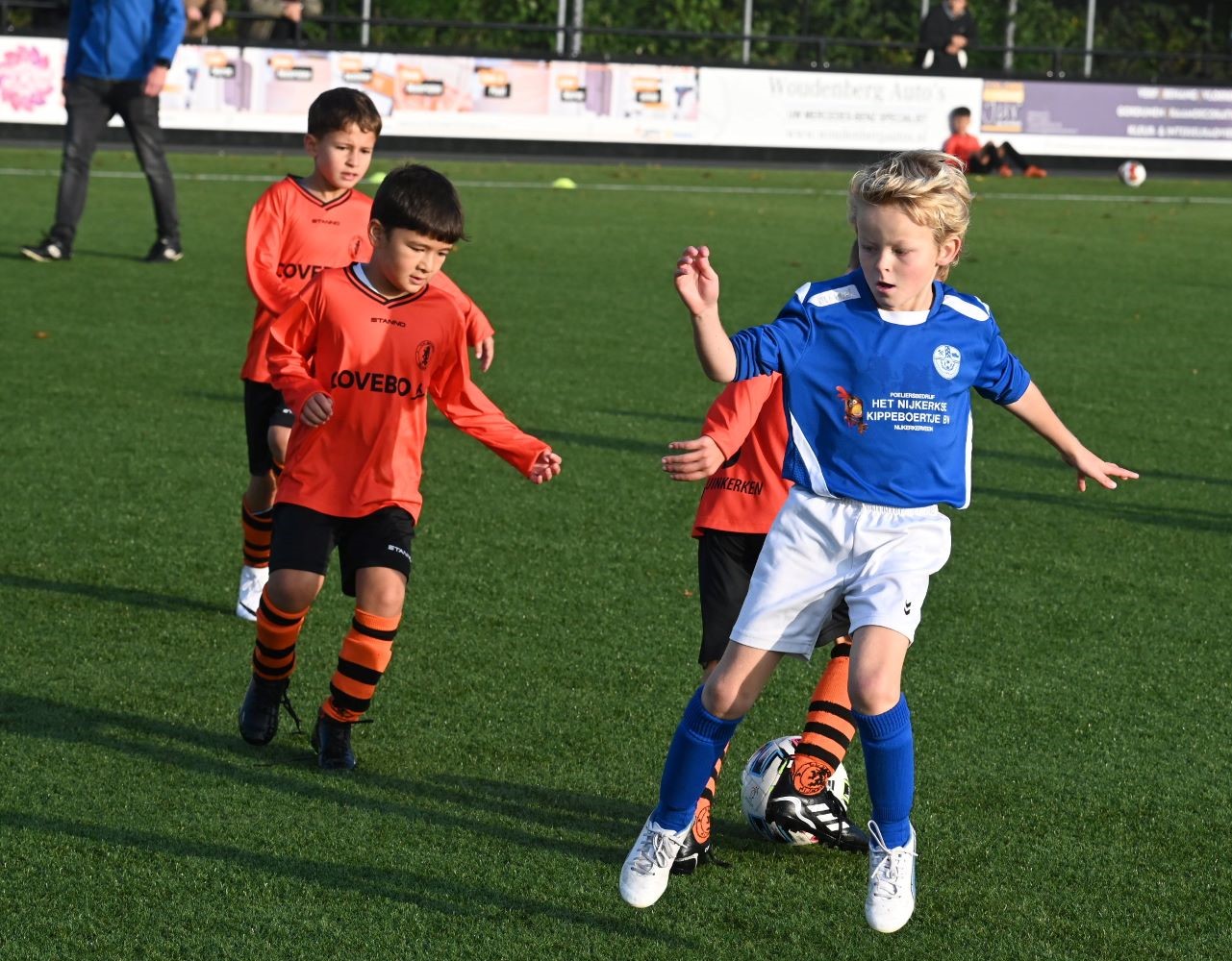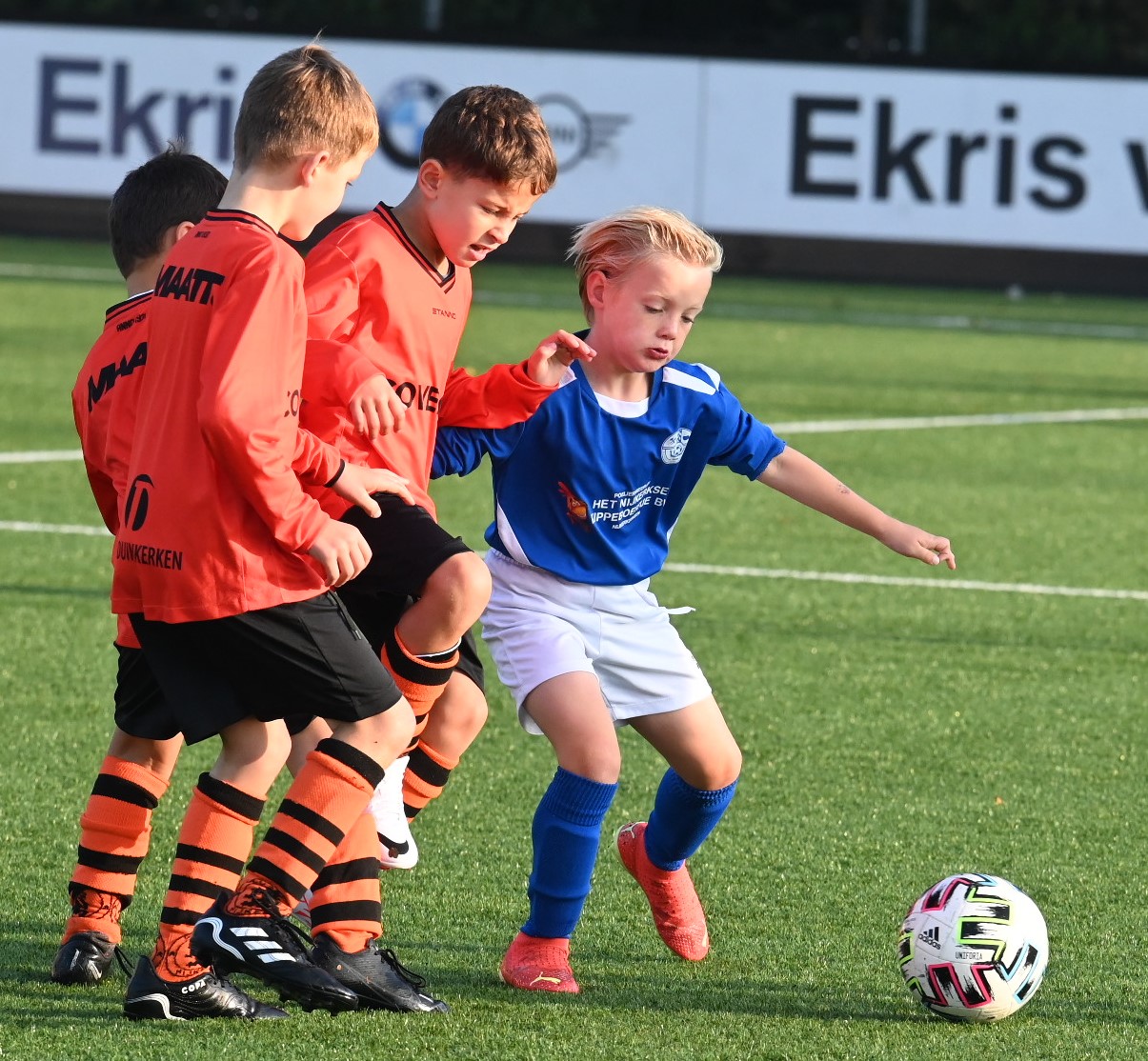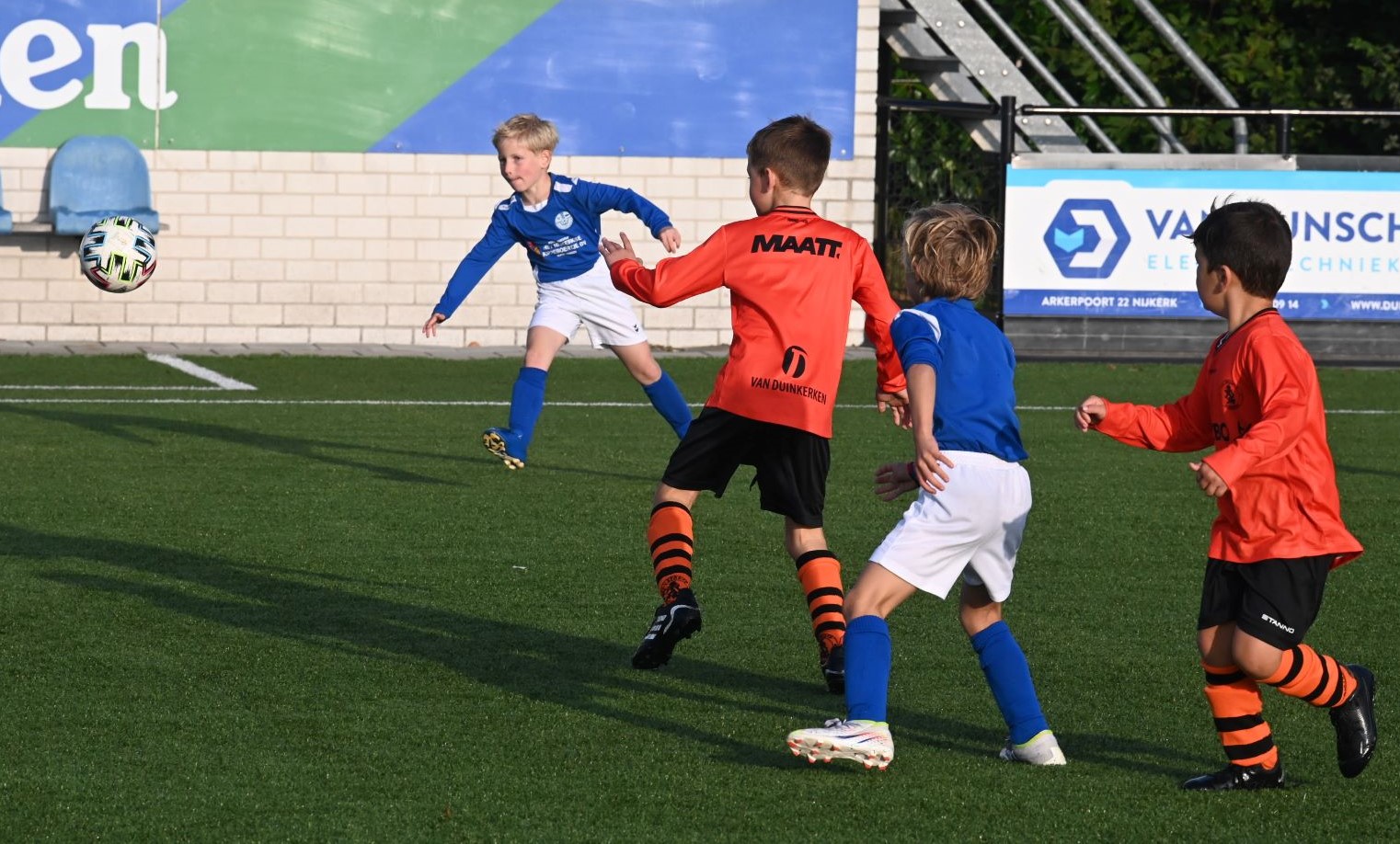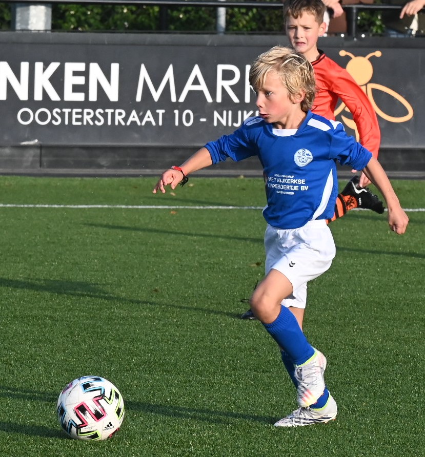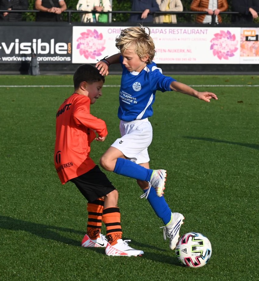 Dagenlang hadden de spelertjes van Veensche Boys Jo8-1 ernaar uitgekeken: het treffen tegen de opponenten van Sparta Nijkerk JO8-2, ofwel de derby der derby’s. Motivatiegesprekken of schwalbe-technieken waren niet nodig, want de jongens uit Nijkerkerveen gingen er vanaf de eerste minuut helemaal voor. Al snel liep de score op tot ongekende hoogte. Bij rust was het al 8-0. Na de thee was het Sparta Nijkerk dat meer pressievoetbal ging spelen, wat zelfs resulteerde in een doelpunt voor de Nijkerkers, maar al snel pakten de Blauwe Helden de draad weer op en stond een score van 12-1 op het wedstrijdformulier. Maar ach, alles is betrekkelijk, zelfs een winstpartij, want een paar meter verderop was eenzelfde derby gaande tussen Veensche Boys Jo9-1 en Sparta Nijkerk Jo9-3 en daar wonnen de Nijkerkers afgetekend met 0-6. Foto Kees van den Heuvel